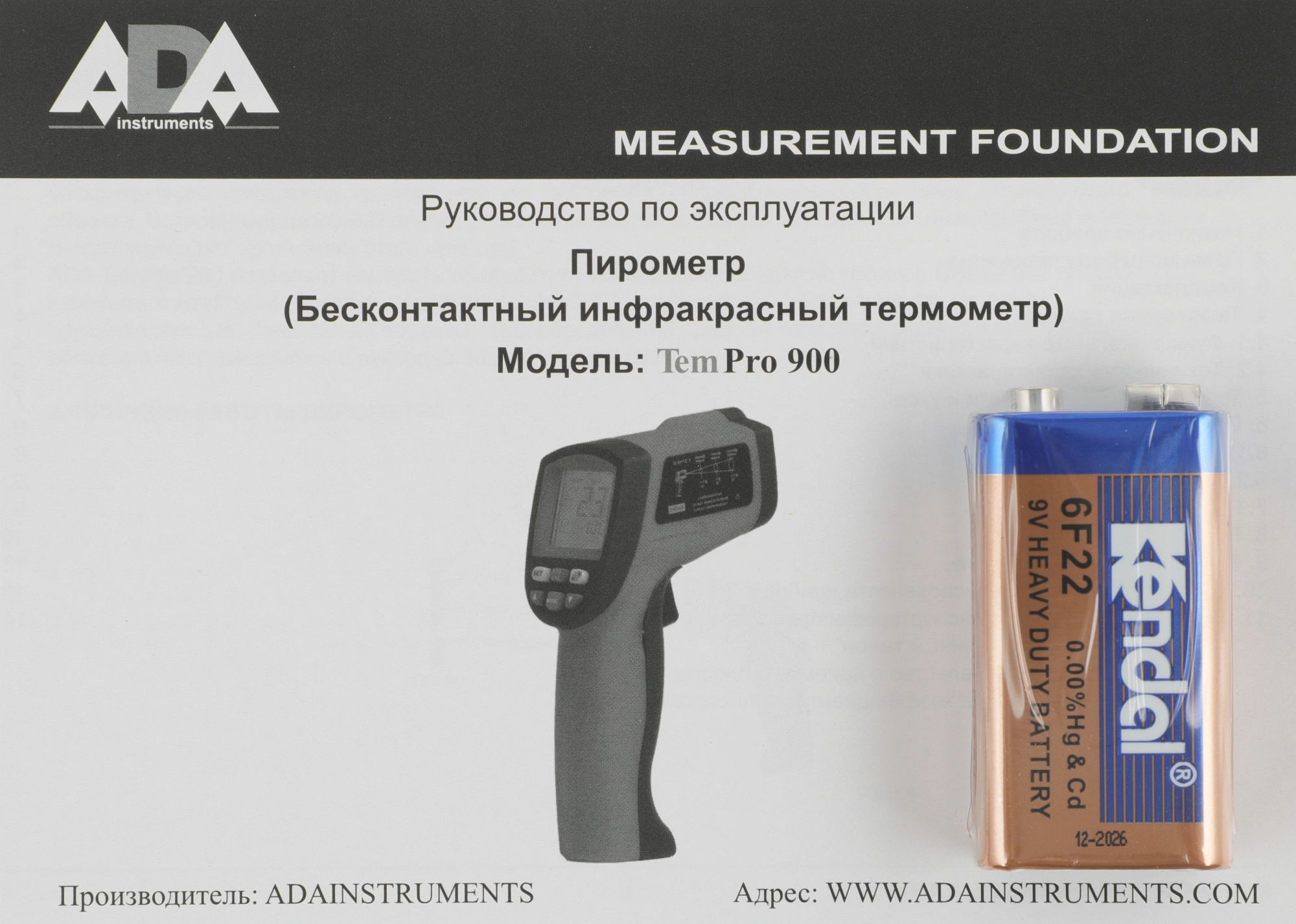 Пирометр ADA TemPro 900 - средне температурный инфракрасный пирометр для проведения промышленных температурных измерений обеспечивает бесконтактное измерение температур в диапазоне от -50°С до +900°С с точностью ±1.5°С.