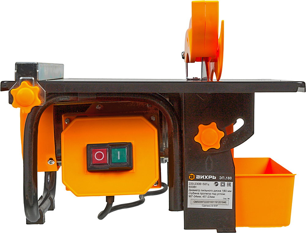 Электрический плиткорез ЭП-180 Вихрь - инструмент для разрезания различных видов керамической и каменной плитки с мягкой и твердой основой. Кроме того возможна обработка изделий из мрамора, гранита, стекла, травертина (при установке соответствующего диска).
