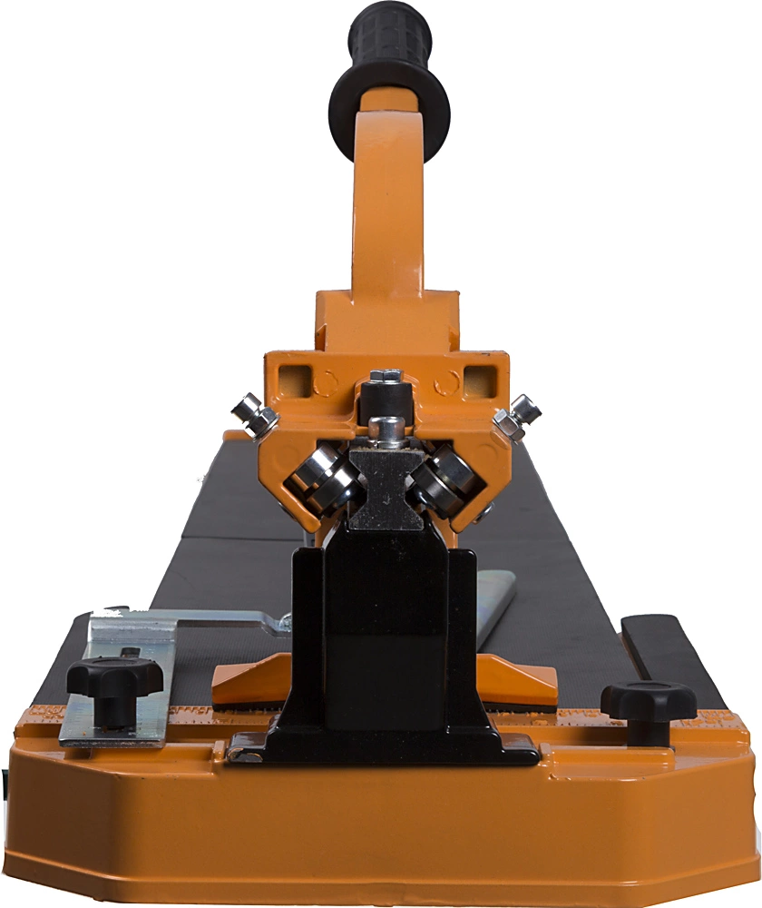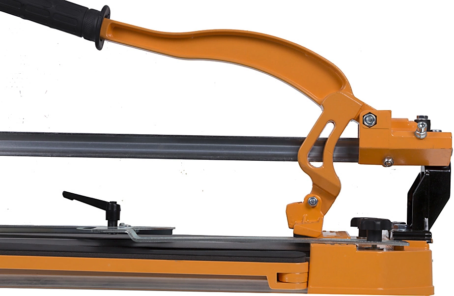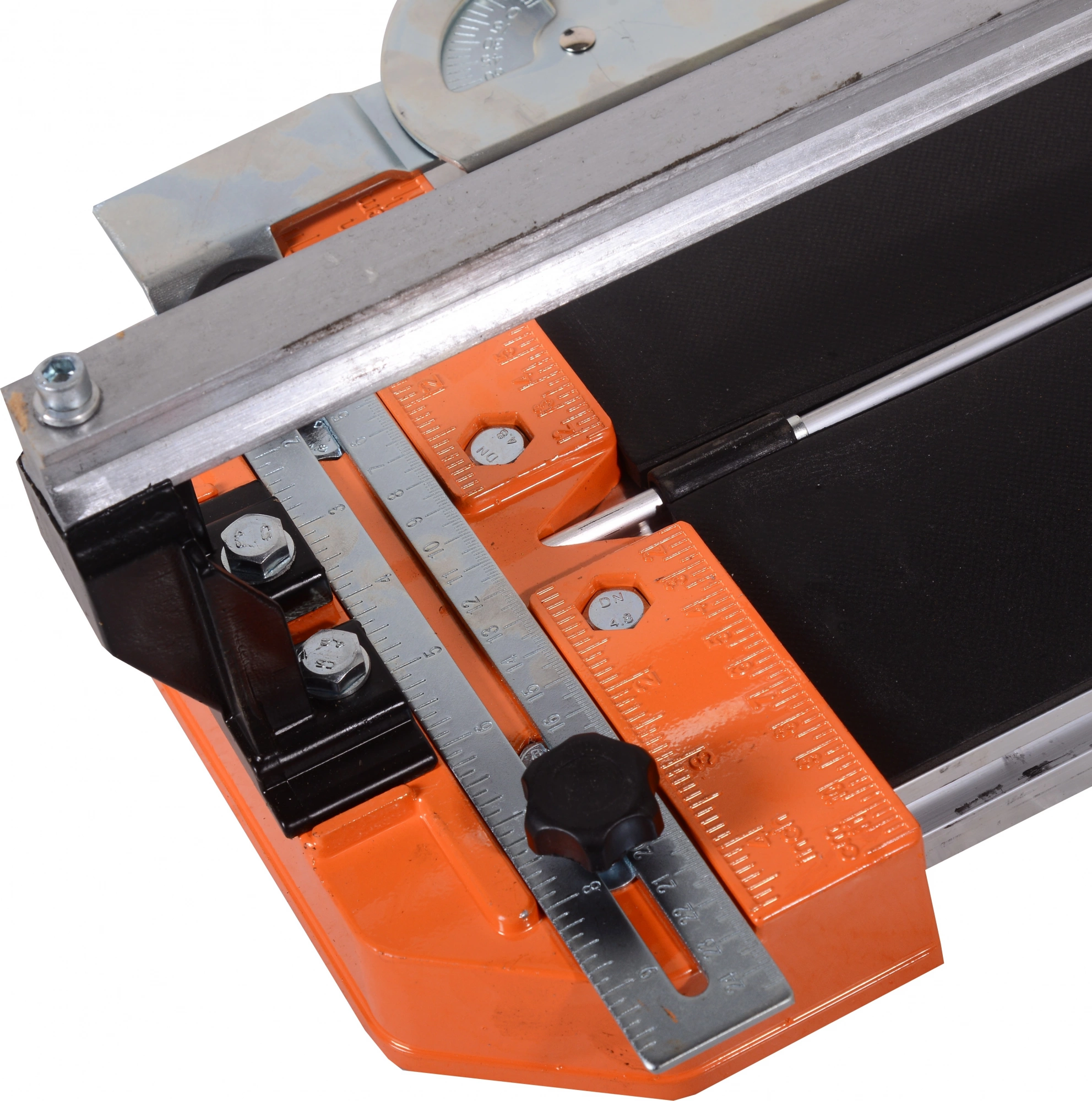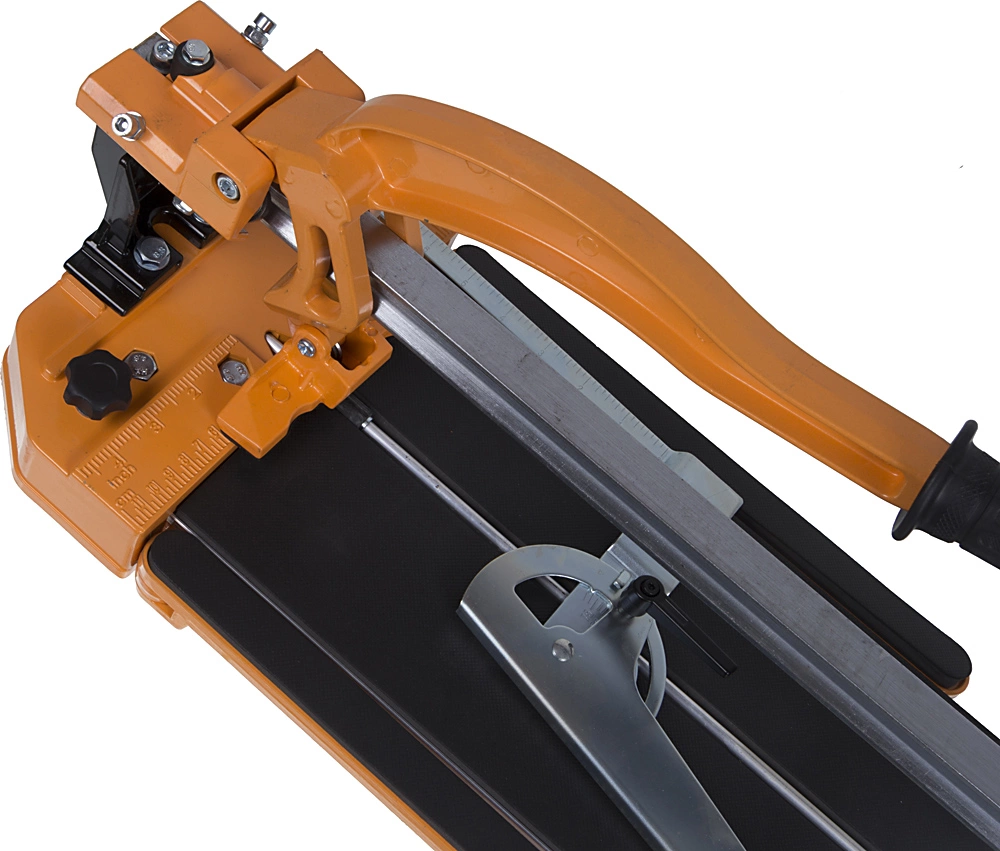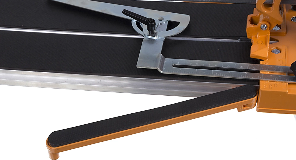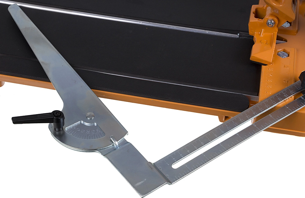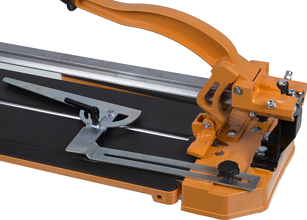 Специальный двухуровневый угольник поможет точно отрезать плитку под необходимым углом. Боковая поддержка плитки позволит комфортно работать даже с плиткой большой ширины. Плиткорез имеет направляющую - двутавровую рейку из специального стального сплава.