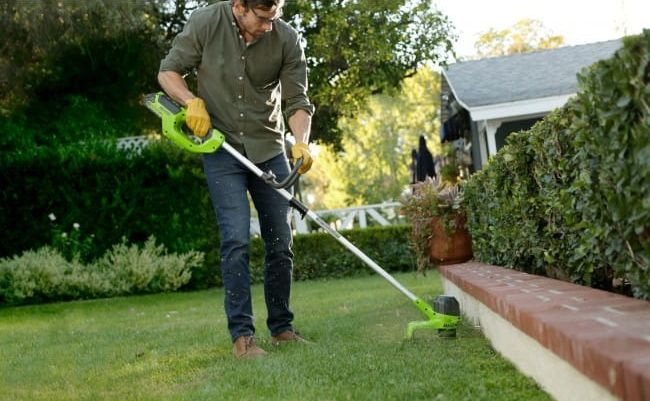 Триммер аккумуляторный; Аккумулятор; Зарядное устройство; D-образная рукоять; Защитный кожух; Руководство пользователя