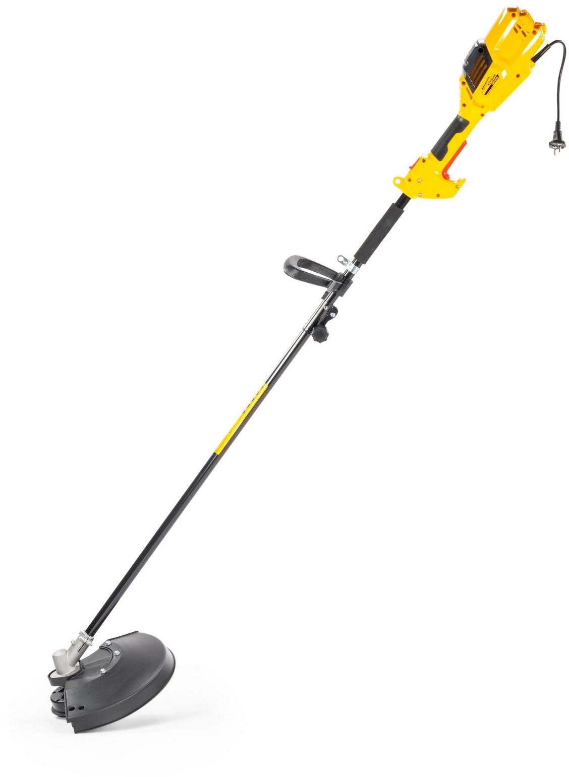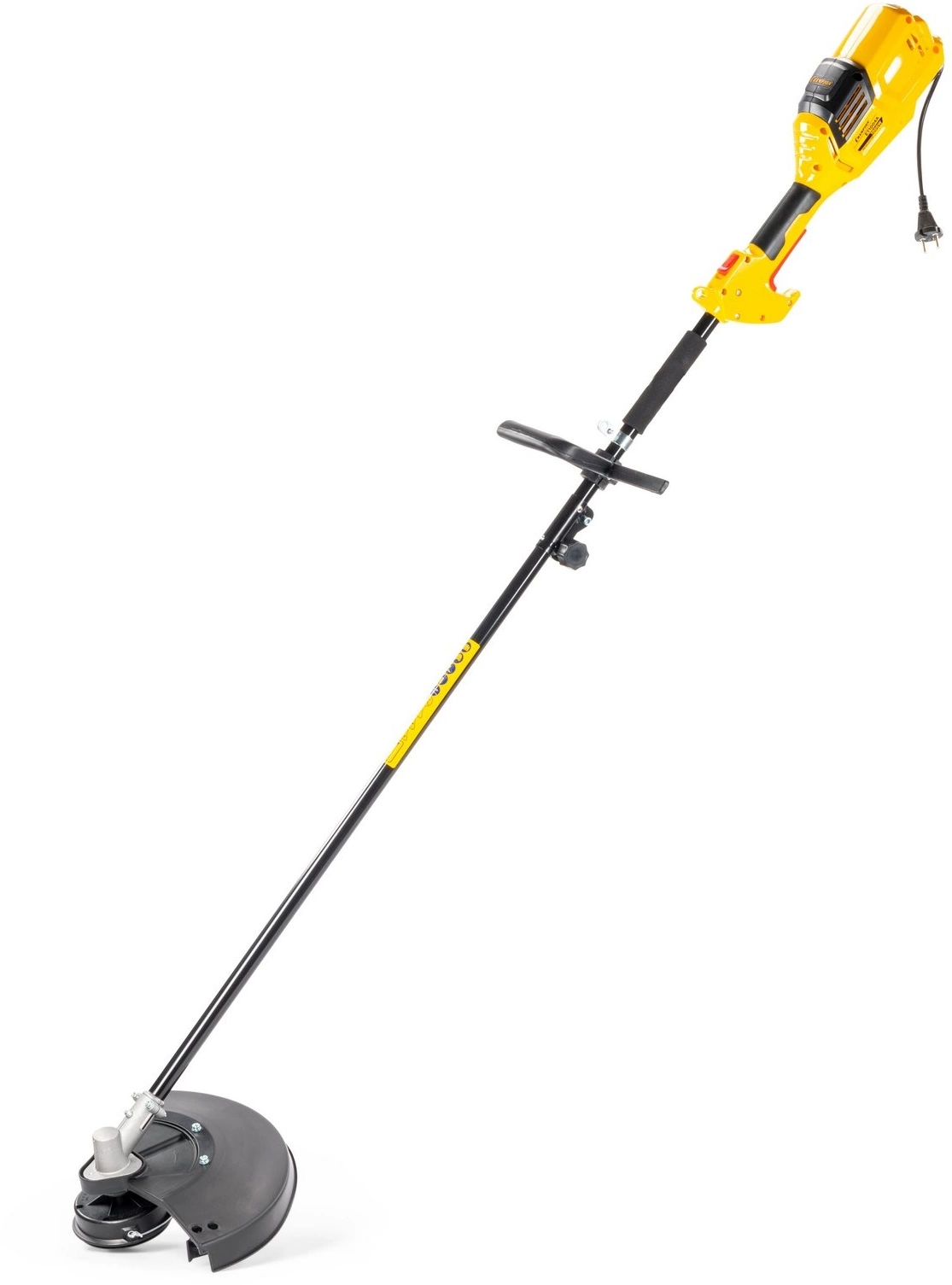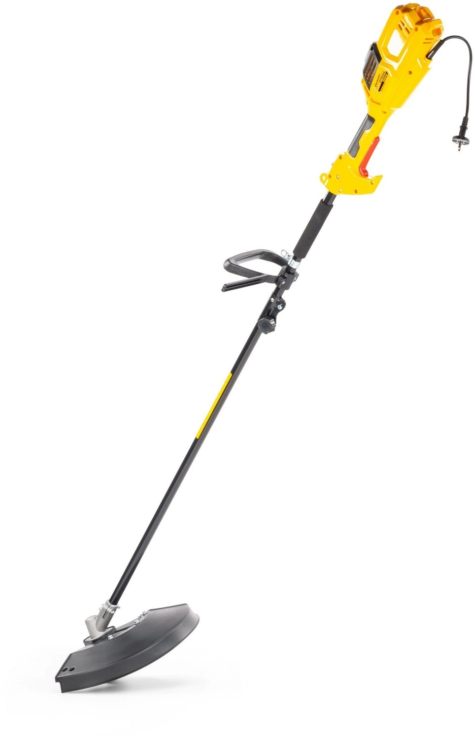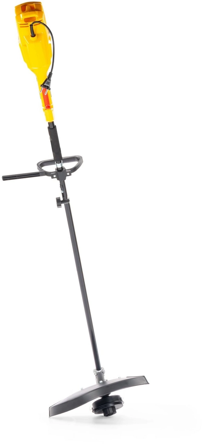 Антивибрационная система двигателя. Верхнее расположение двигателя. Большая мощность.Двойная изоляция обмотки двигателя. Прямая стальная штанга. Усиленный гибкий вал. Полуавтоматическая шпуля с двумя режущими лесками. Четырехлопастной металлический диск. Удобная регулировка под рост оператора.