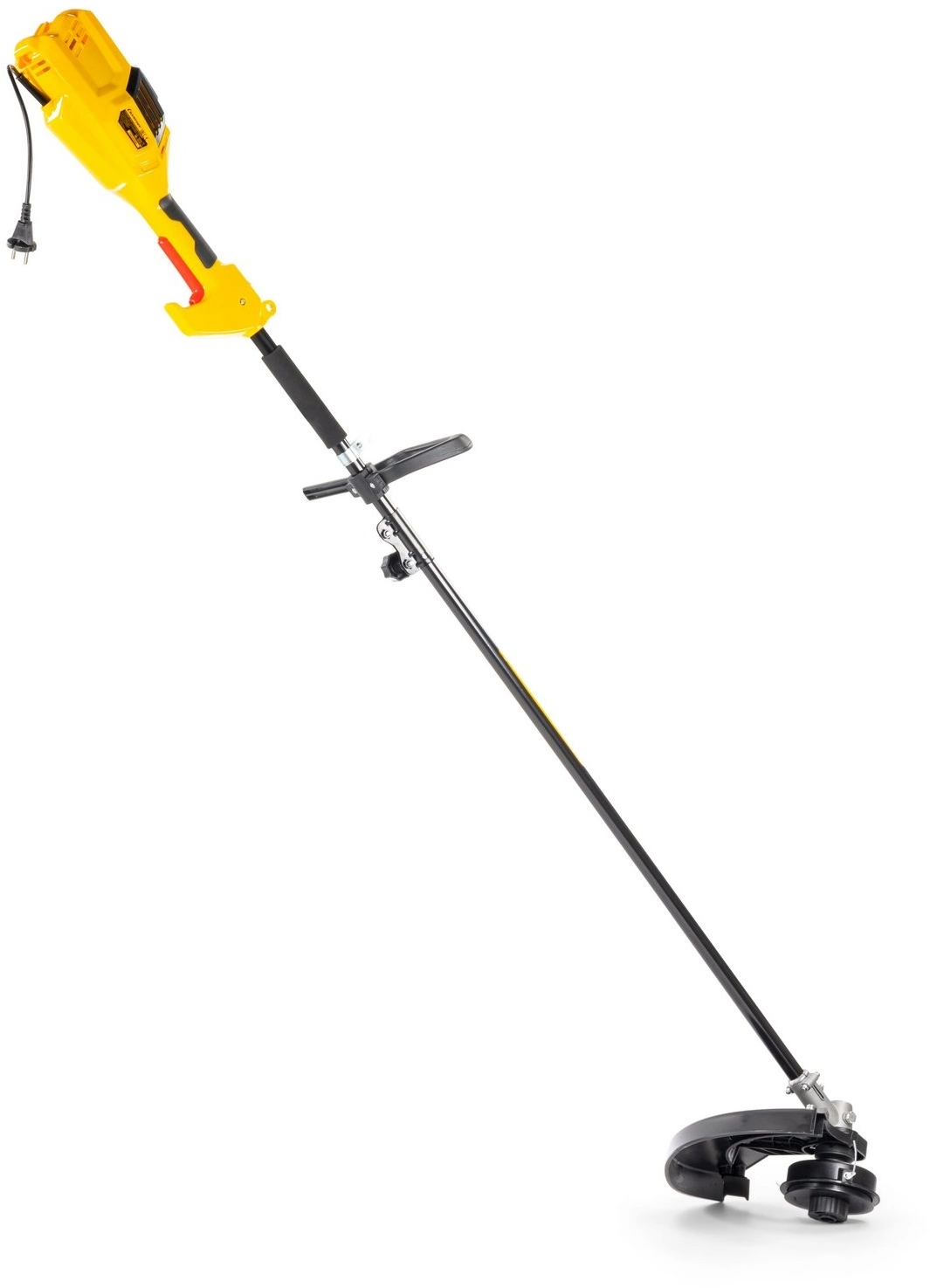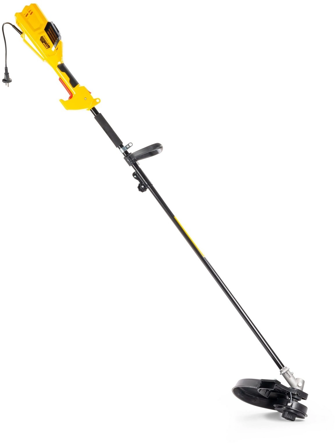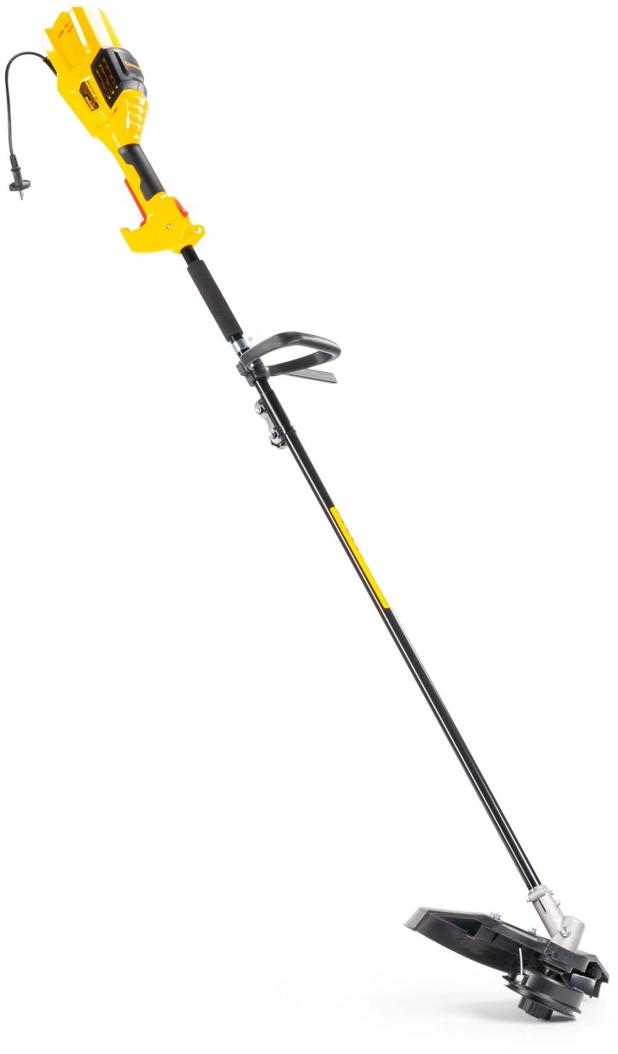 Антивибрационная система двигателя. Верхнее расположение двигателя. Большая мощность.Двойная изоляция обмотки двигателя. Прямая стальная штанга. Усиленный гибкий вал. Полуавтоматическая шпуля с двумя режущими лесками. Четырехлопастной металлический диск. Удобная регулировка под рост оператора.