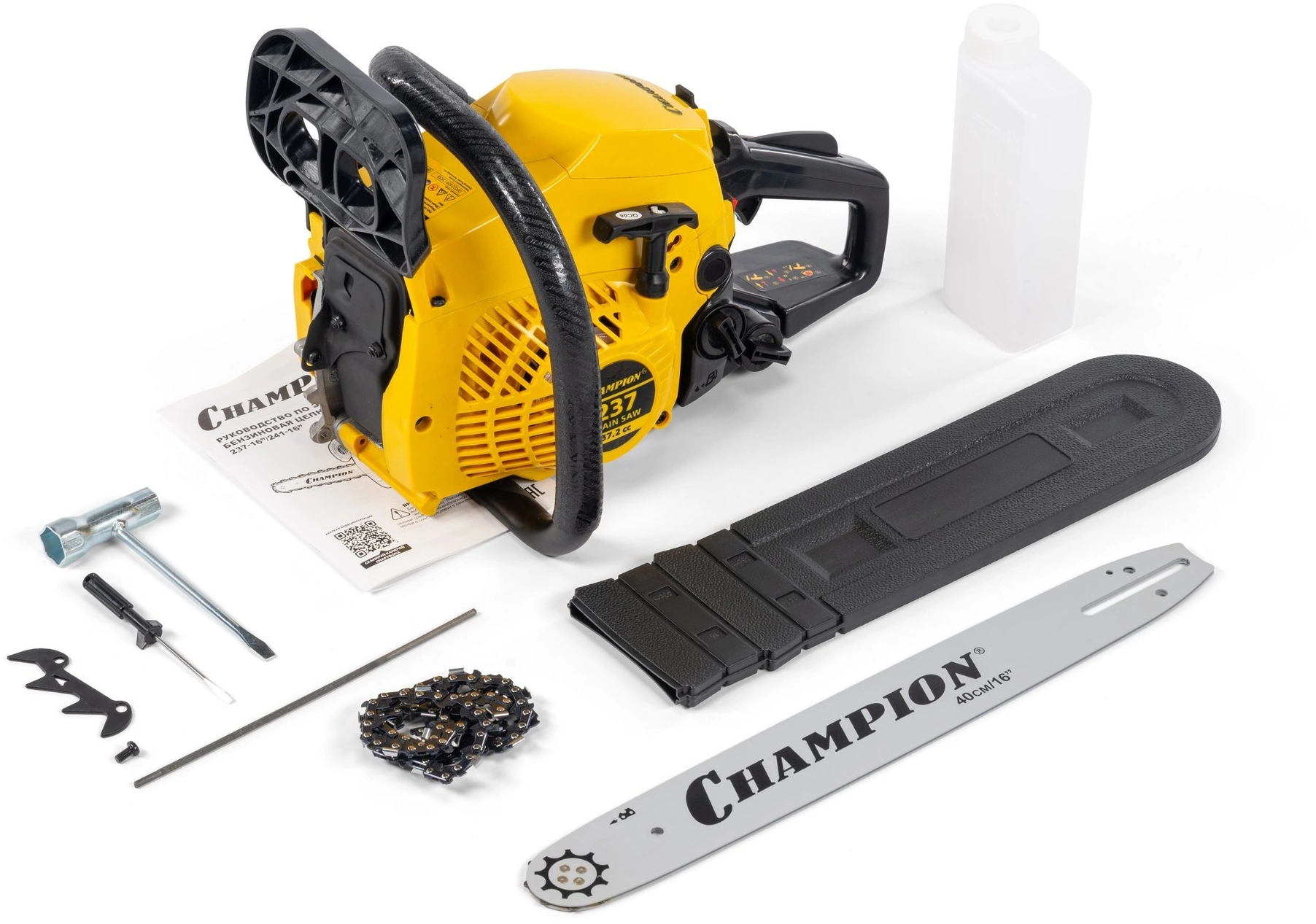 Бензопила, пильная шина, цепь, свечной ключ, отвертка для настройки карбюратора, инструкция, упаковка.