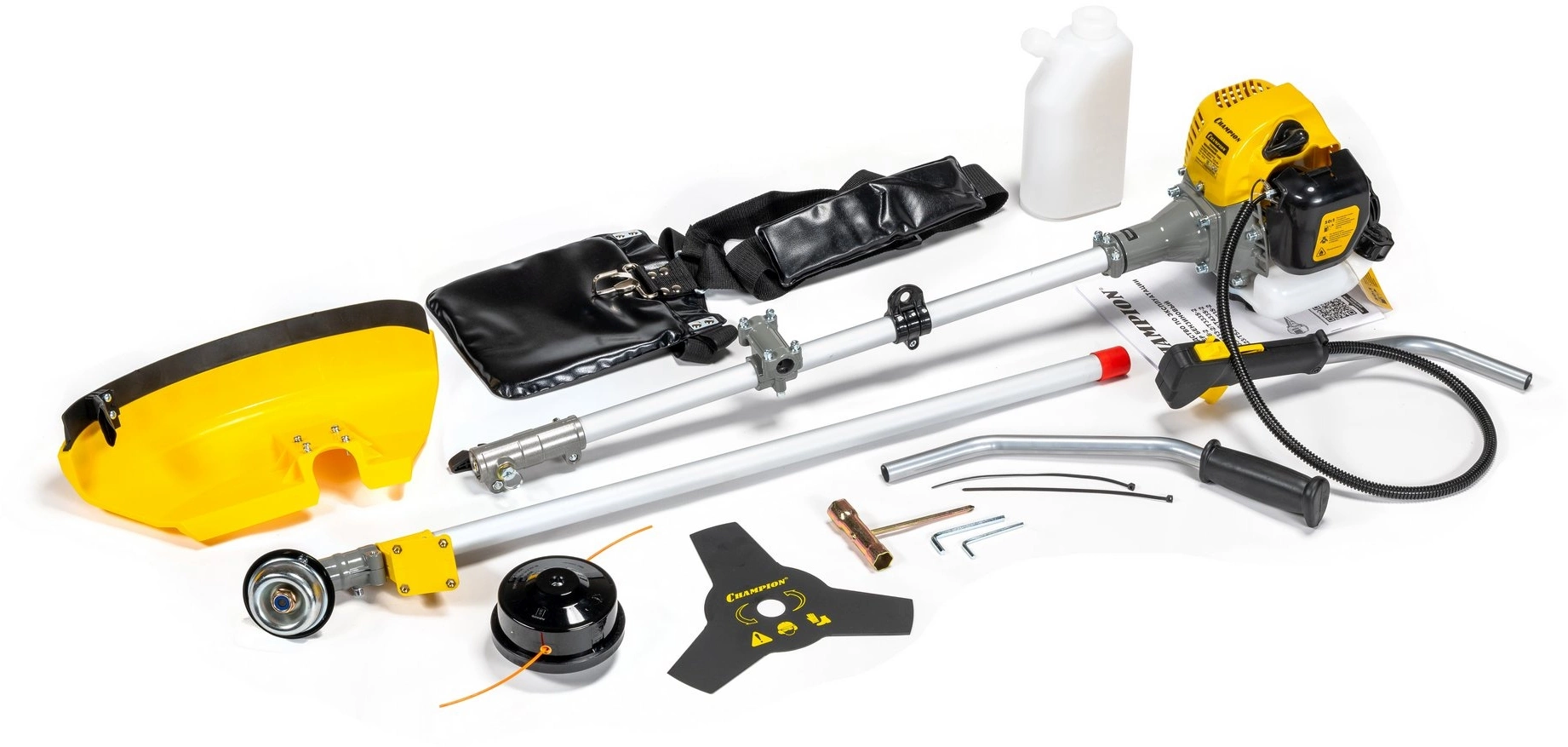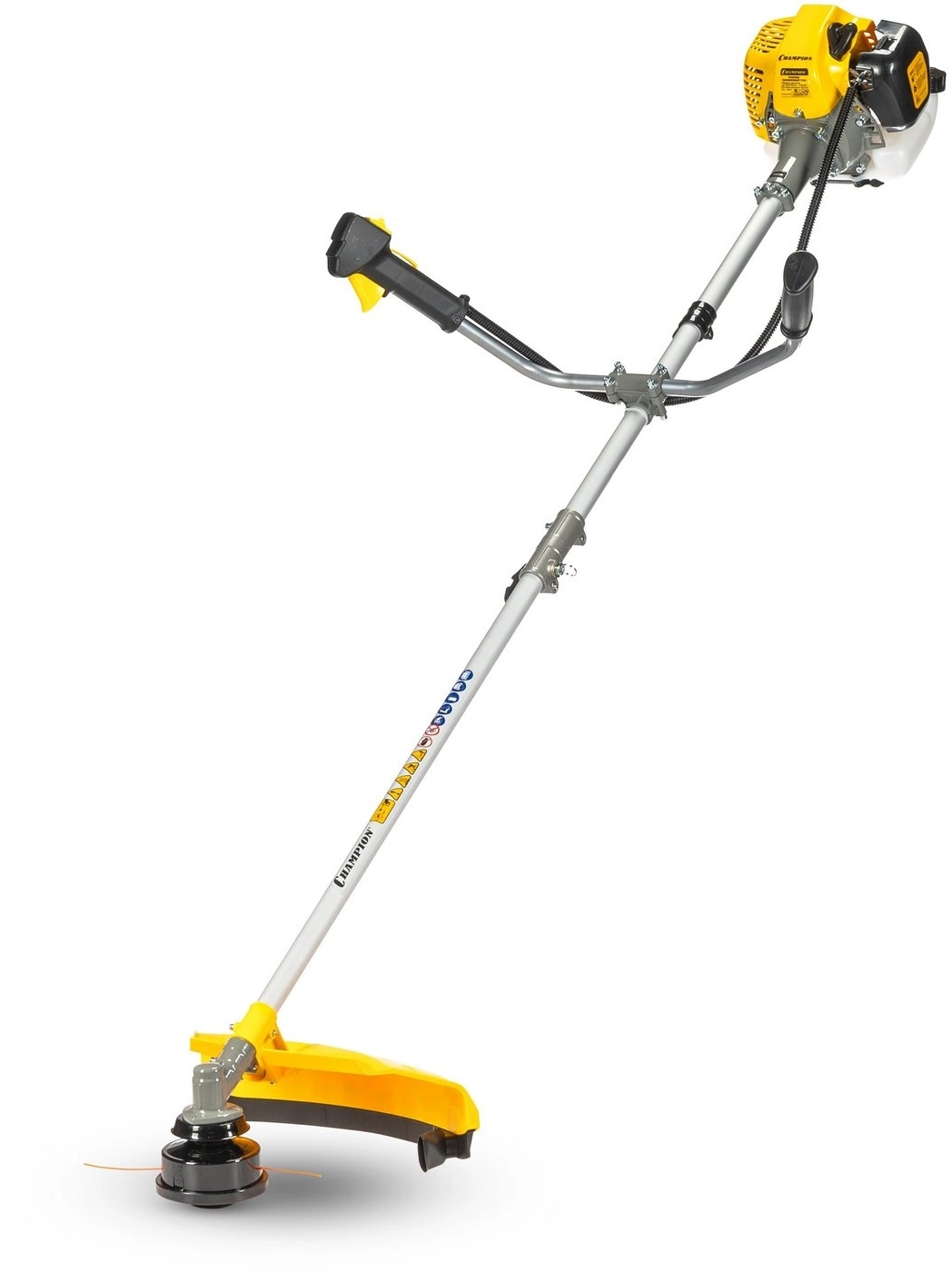 Две режущие оснастки: триммерная головка и 3-х лопастной нож. Воздушное охлаждение двигателя. Диафрагменный карбюратор. Разъёмная штанга - удобство хранения и транспортировки триммера. Используемое топливо: смесь бензина (АИ-92) и масла для двухтактных двигателей Champion в соотношении 50:1.