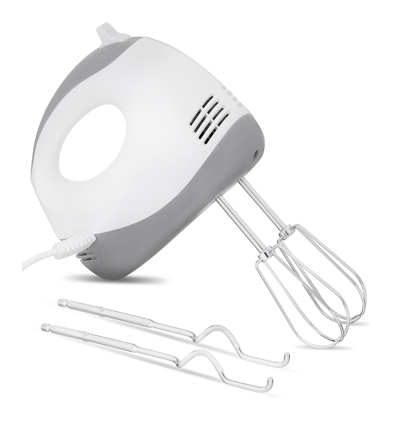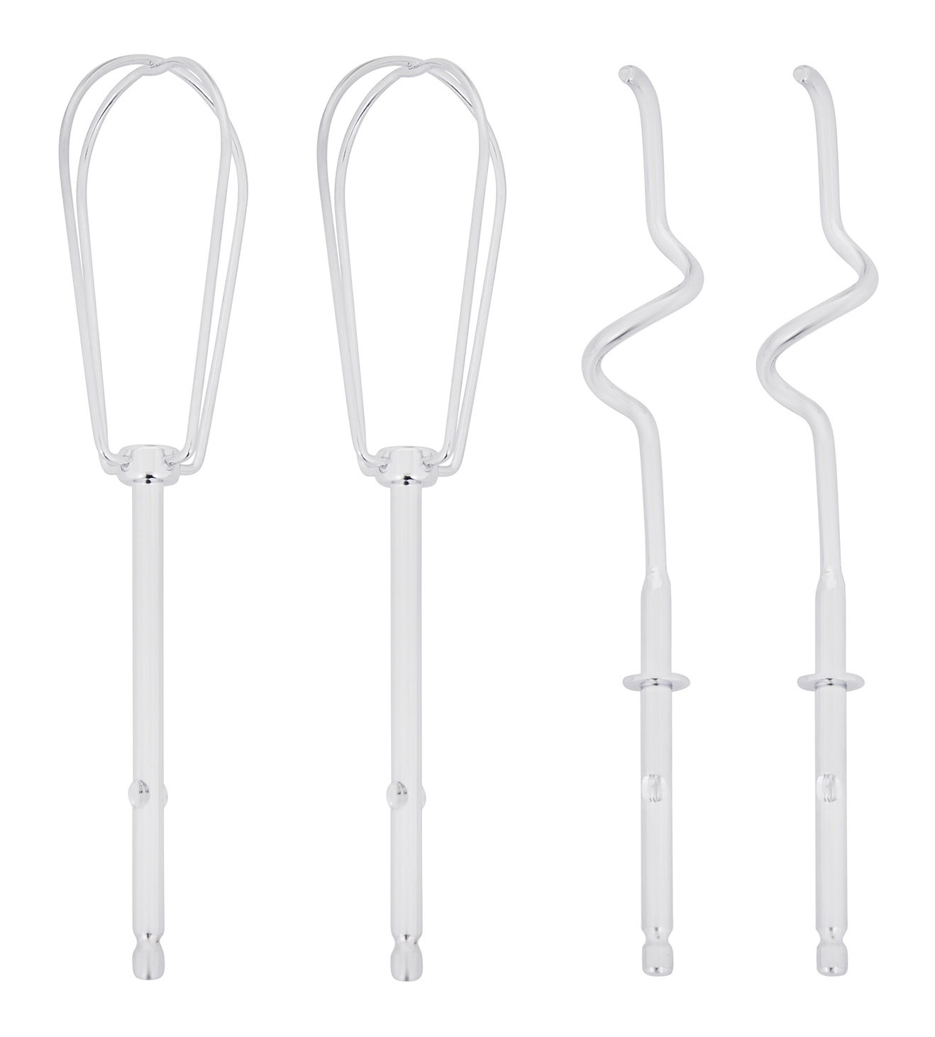 • В комплекте прилагается два венчика для взбивания и два крюка для теста;