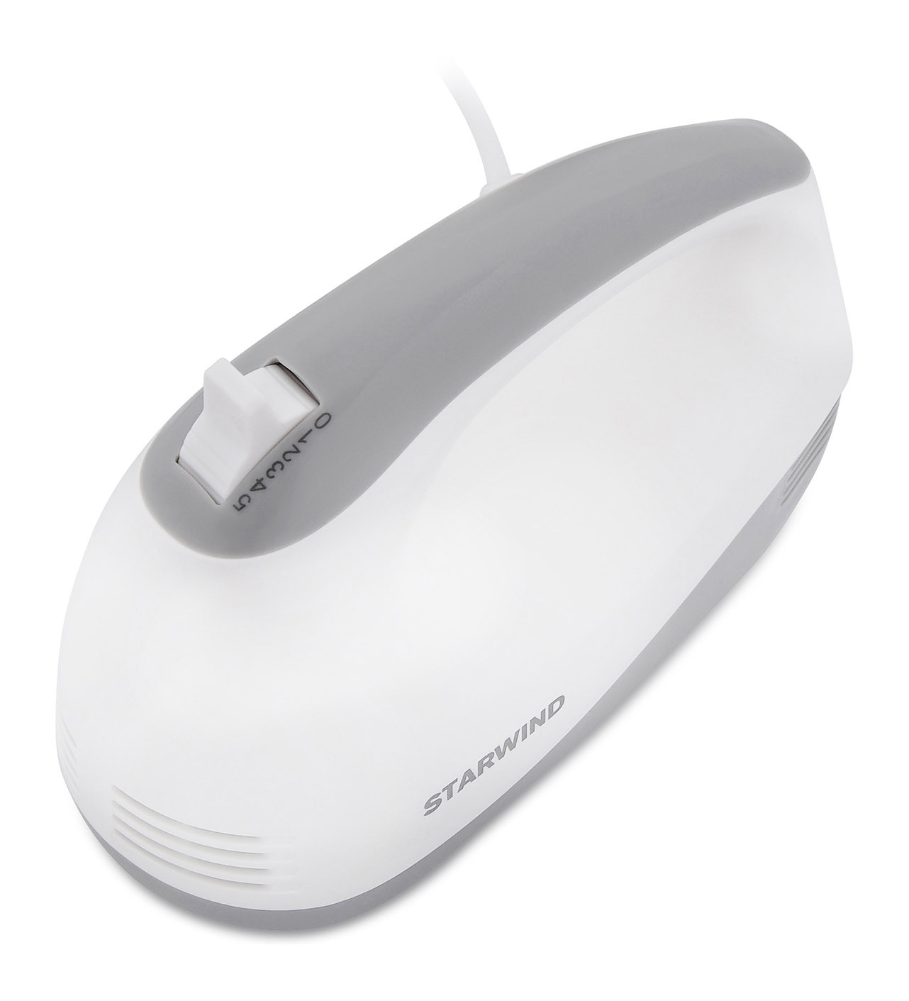 Корпус модели выполнен из пластика в белых и серых цветах. С передней и тыльной стороны предусмотрена перфорация для вывода горячего воздуха для предотвращения перегрева мотора. Преимущества ручного миксера STARWIND SHM-211: