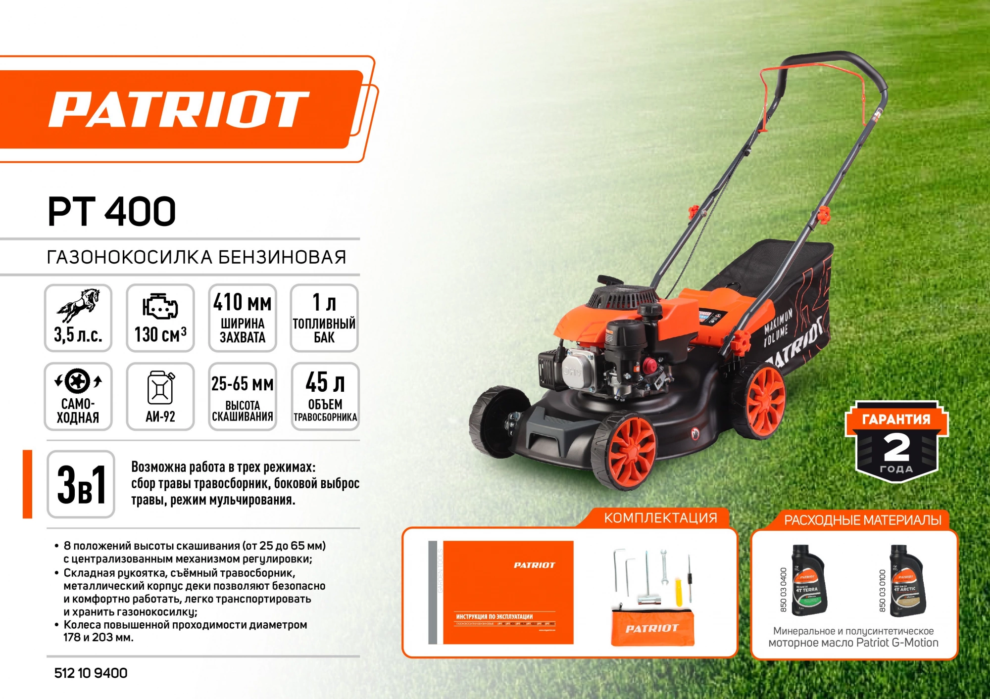 регулировка высоты скашивания, ручки для транспортировки