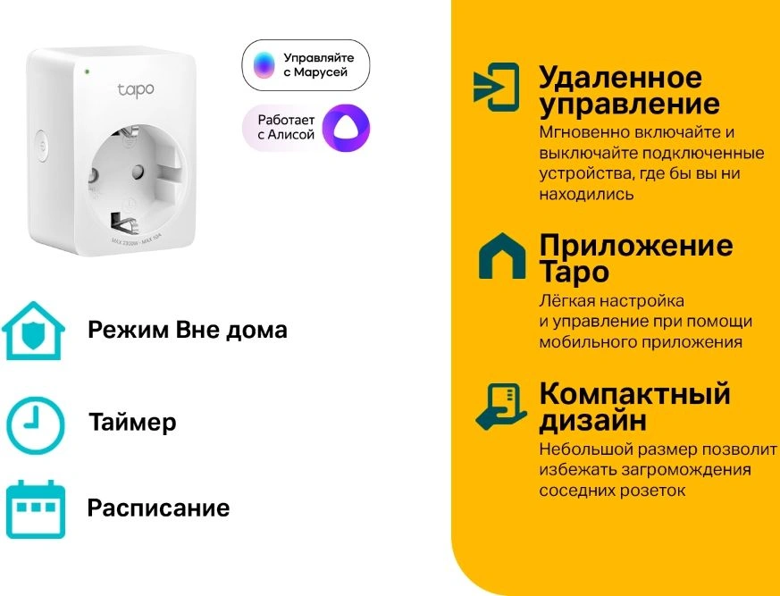 Удалённое управление, Расписание и таймер, Голосовое управление при помощи Маруси, Яндекс Алисы или Google Ассистента. Компактный дизайн, Режим «Нет дома», Семейный доступ