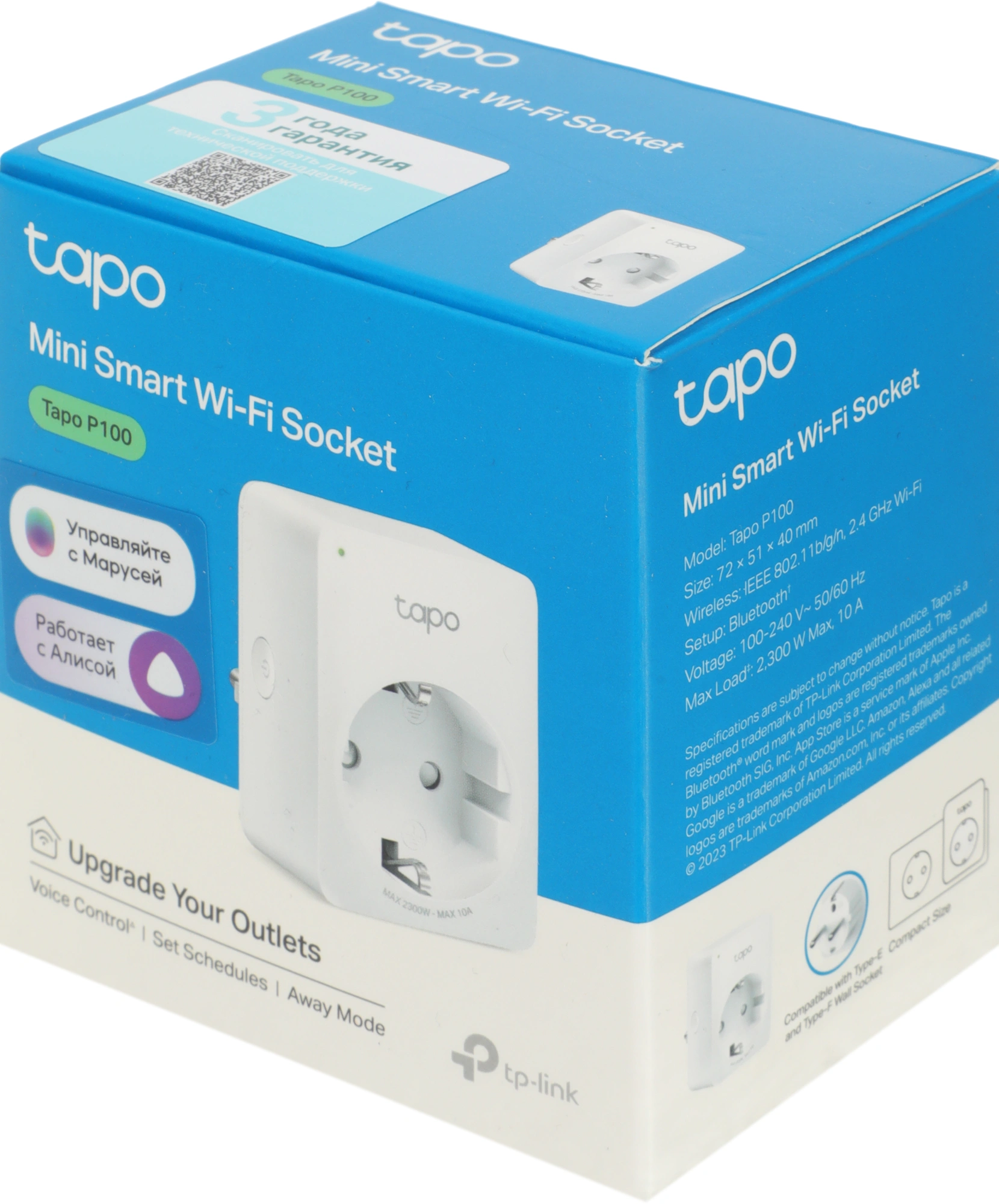 Умная мини Wi-Fi розетка P100 позволяет мгновенно включать и выключать подключенные устройства через приложение Tapo, где бы вы ни находились. Возможность создания расписания для автоматизации работы устройств. Режимы «Таймер» и «Нет дома» для автоматического включения и выключения устройств.