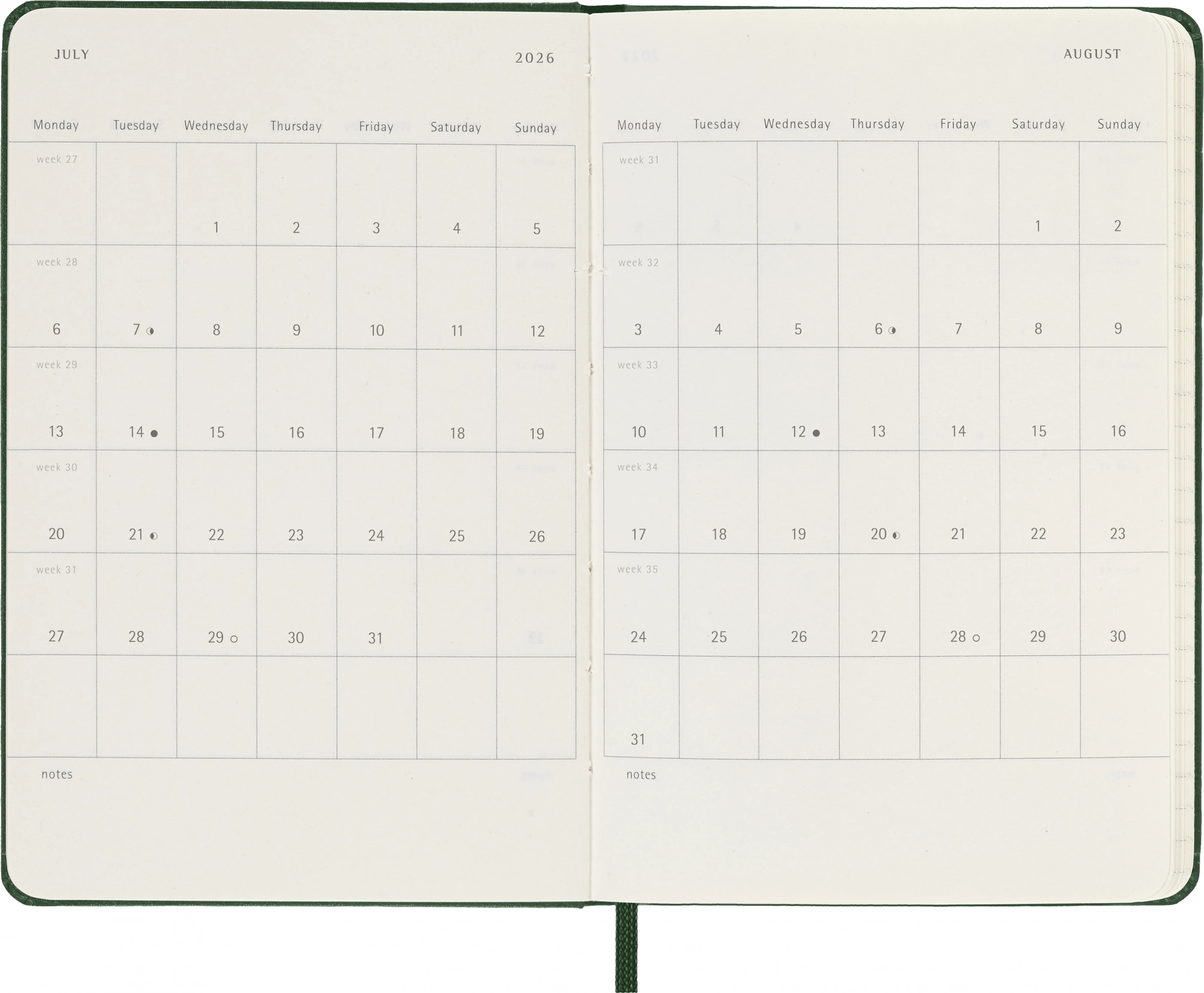 Записная книжка-еженедельник Moleskine датирована с января по декабрь.