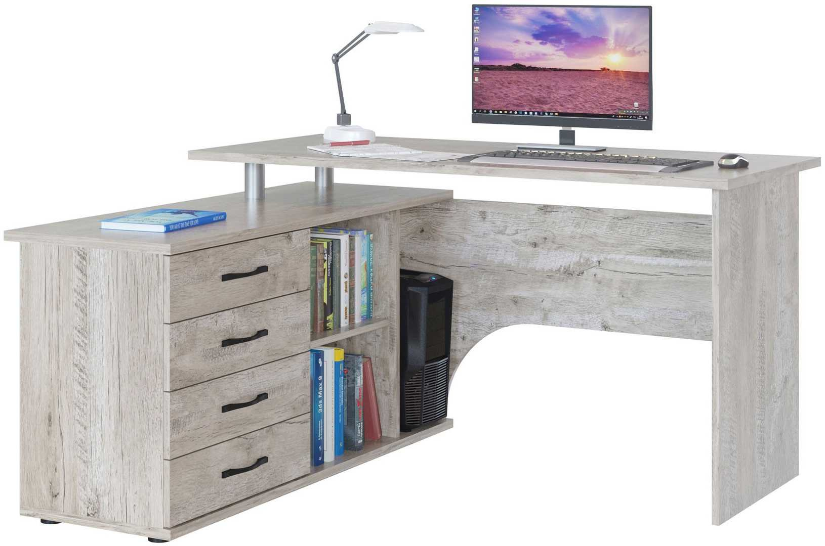 Стол оборудован тумбой с четырьмя ящиками на роликовых направляющих, открытыми полками и нишей под системный блок. Такая модель компьютерного стола позволяет организовать функциональную рабочую зону как в домашнем кабинете, так и в офисе.
