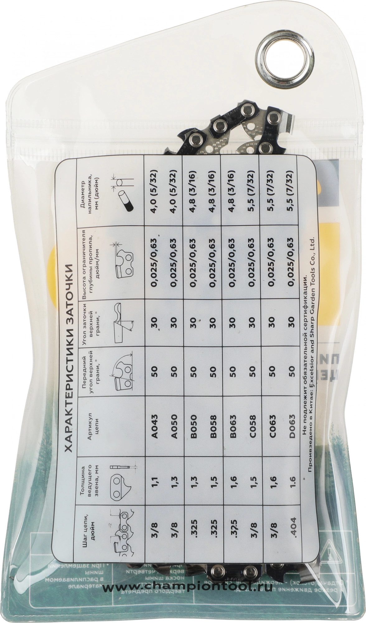 Цепь Champion A050-VS-55E. Подходит для электрических и бензиновых пил. Обладает высокой производительностью и износостойкостью, низкой вибрацией и отдачей. При работе создает мало шума. Режущие зубья изготовлены из специальной стали, их геометрия позволяет делать аккуратный и чистый срез.