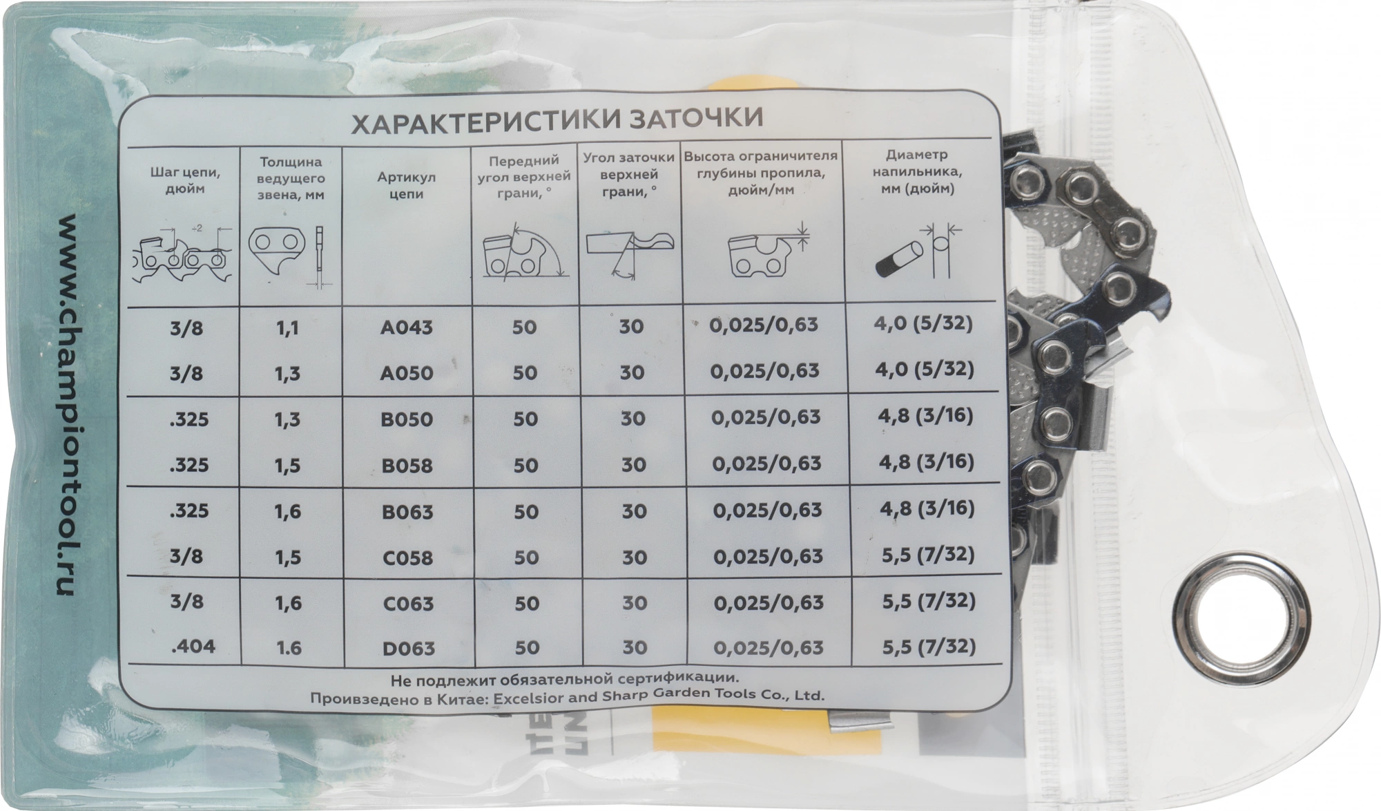 Цепь Champion B050-BP-72E. Подходит для электрических и бензиновых пил. Обладает высокой производительностью и износостойкостью, низкой вибрацией и отдачей. При работе создает мало шума. Режущие зубья изготовлены из специальной стали, их геометрия позволяет делать аккуратный и чистый срез.