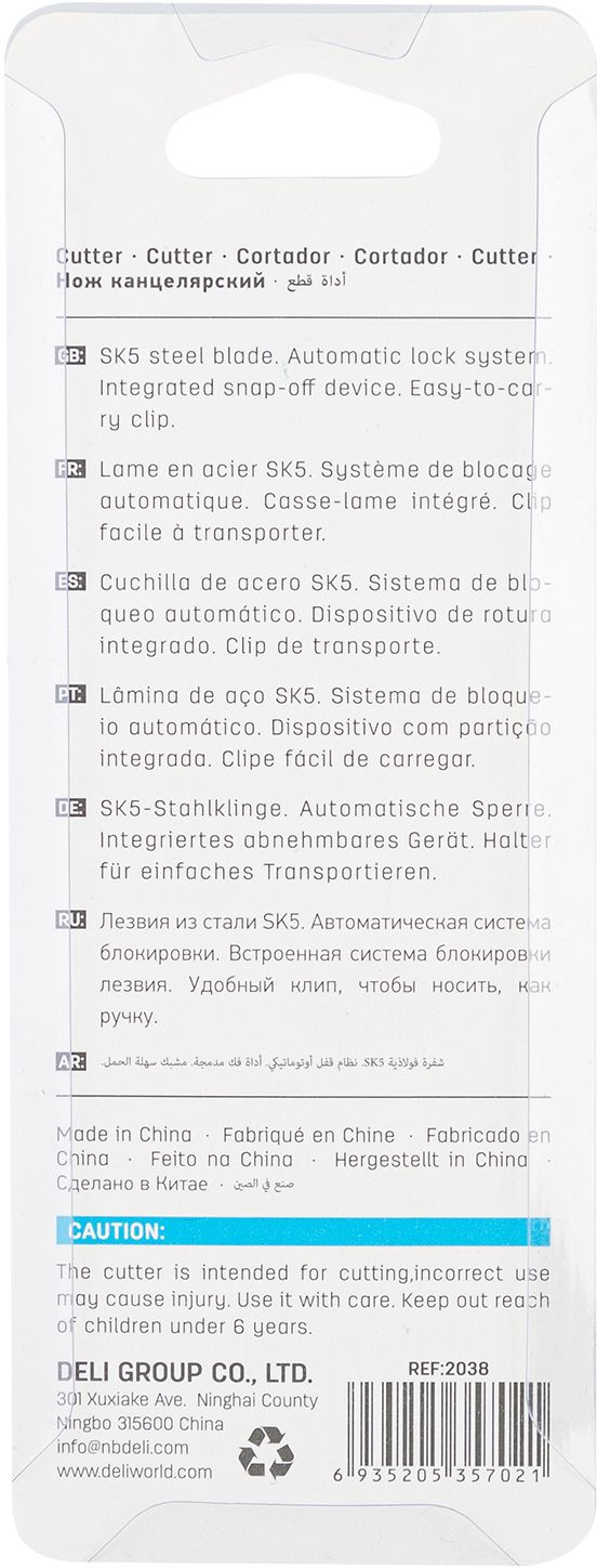 Нож канцелярский Deli E2038BLUE 80мм шир.лез.9мм синий блистер