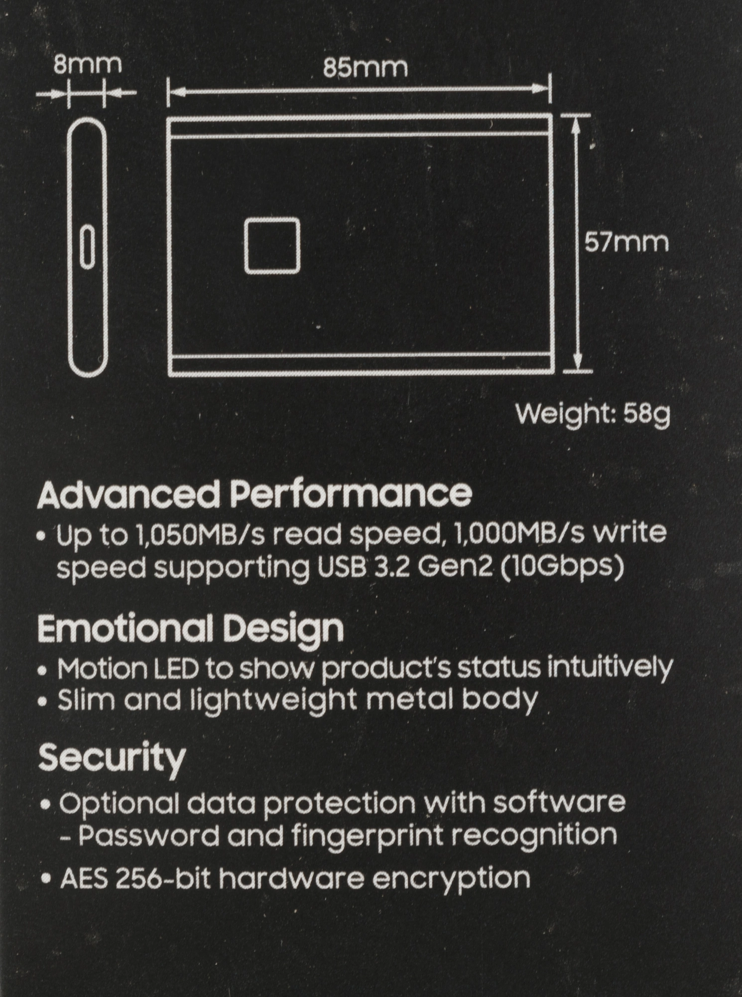 аппаратное шифрование (AES-256), сканер отпечатка пальца