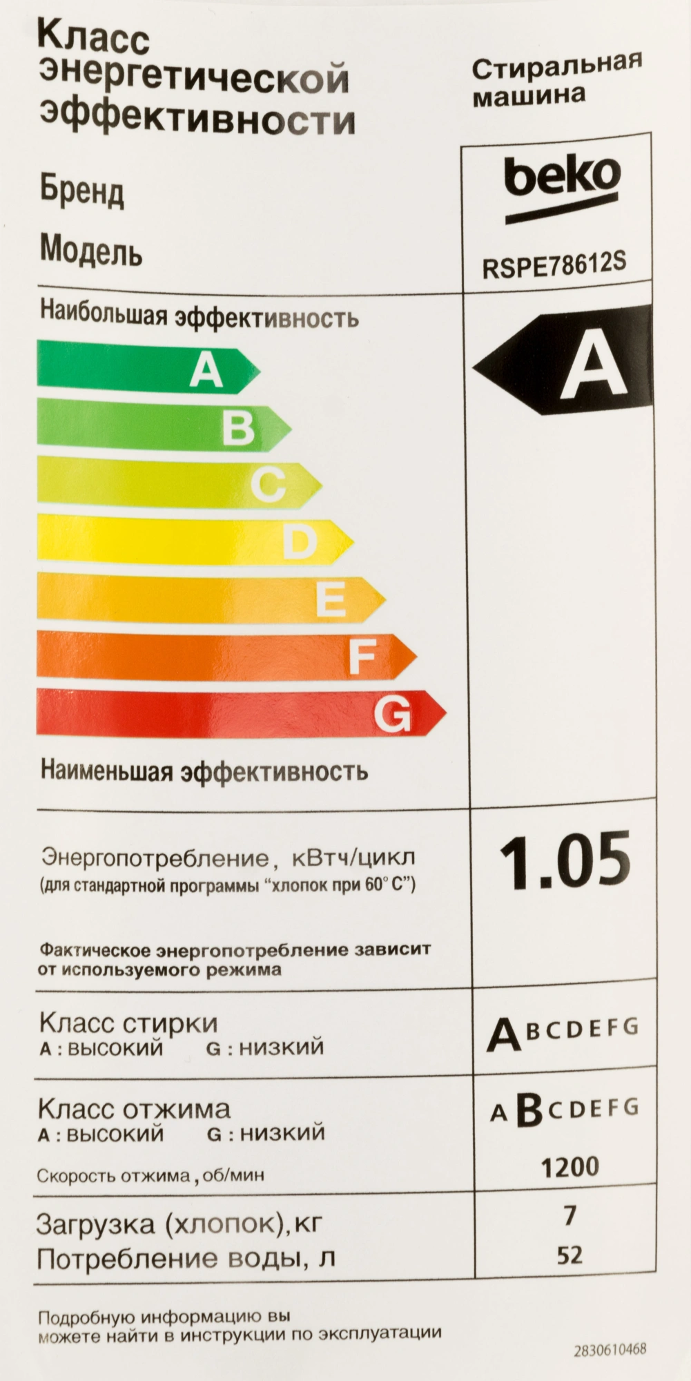 класс: A загр.фронтальная макс.:7кг серебристый ин...