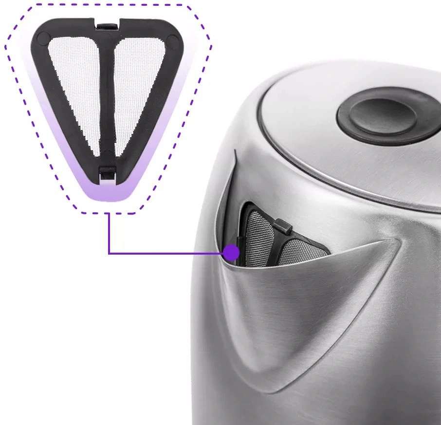 кнопка открытия крышки, подсветка воды, подставка 360, фильтр от накипи