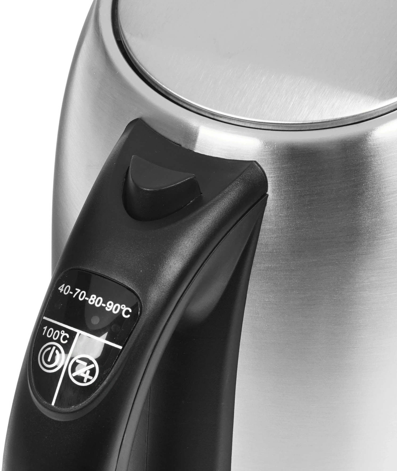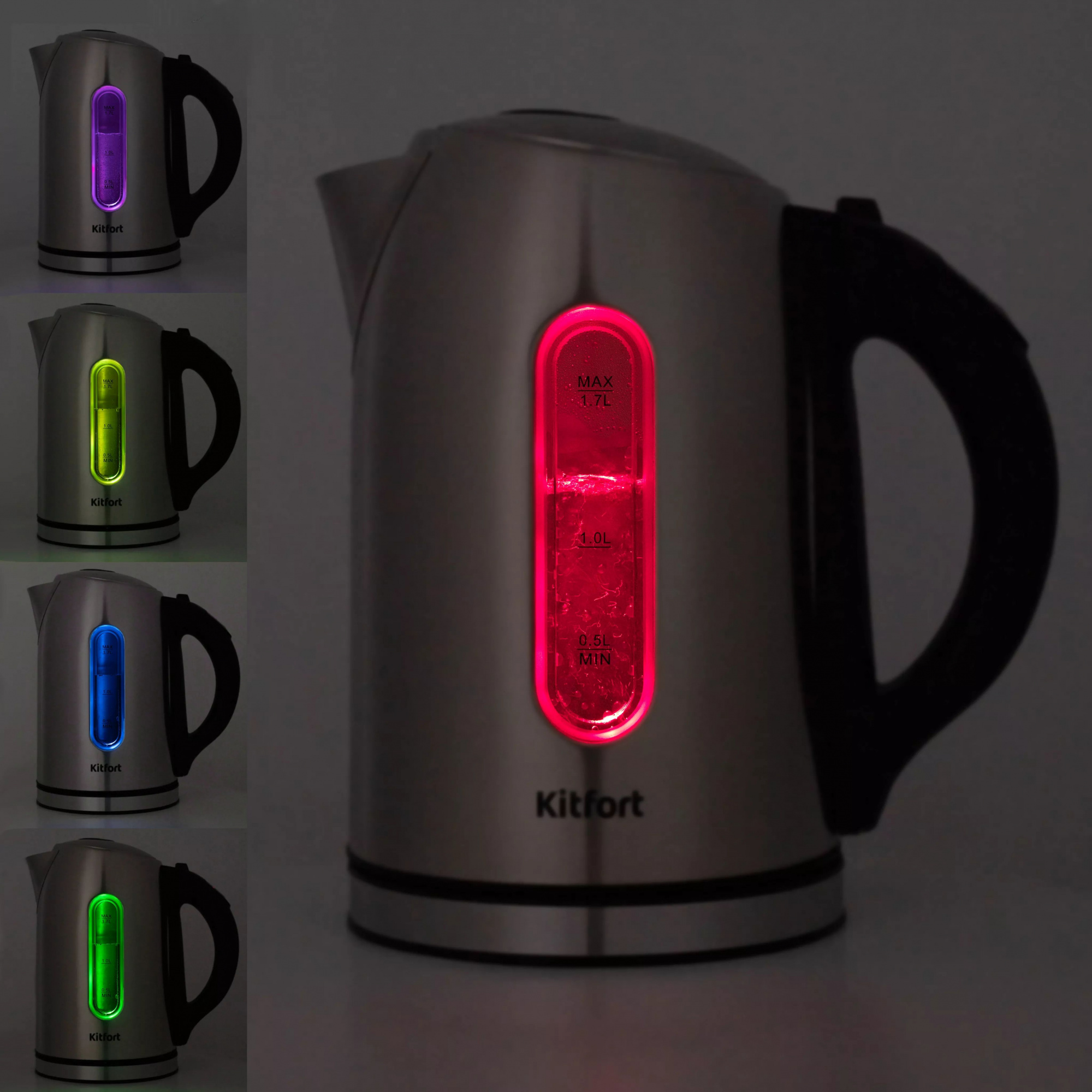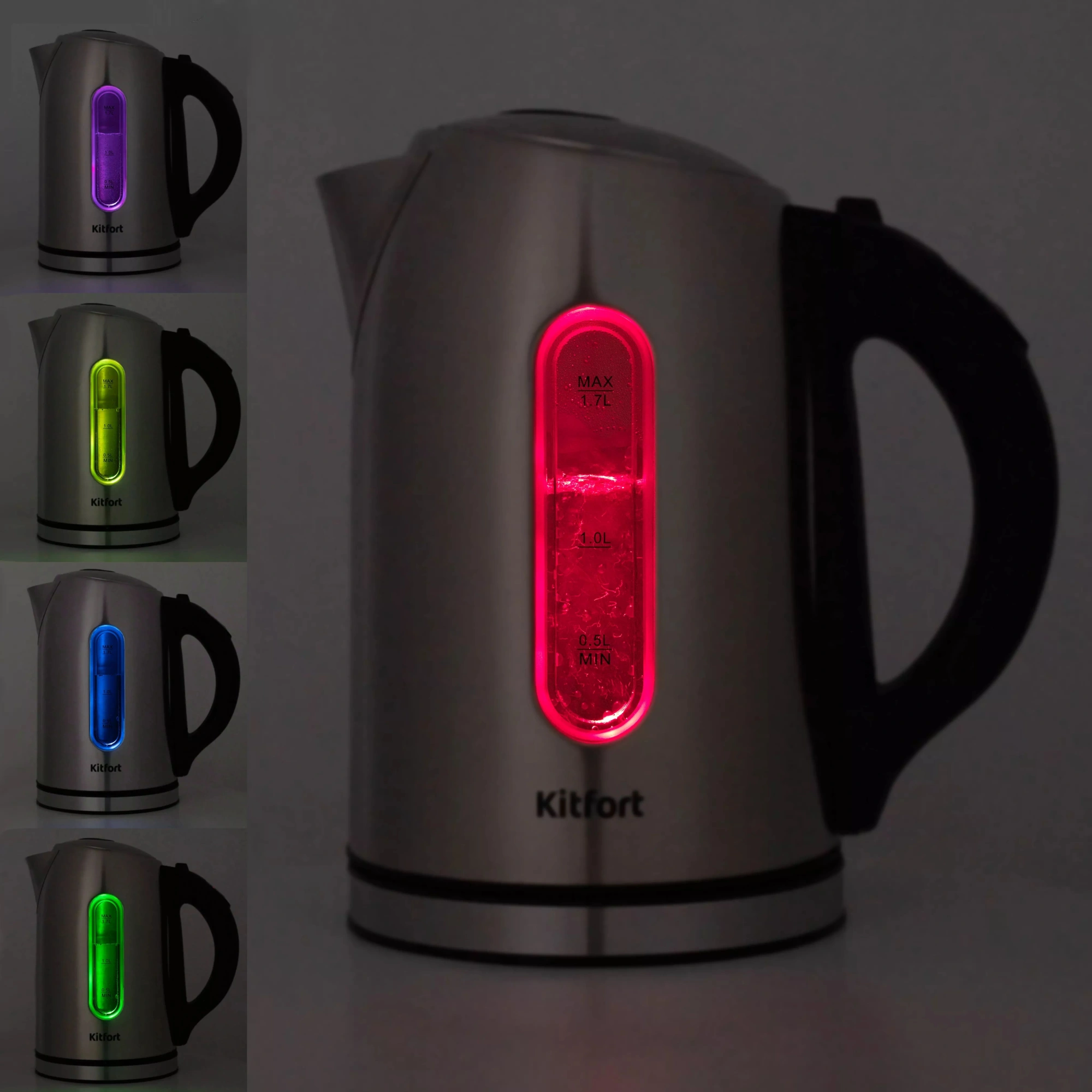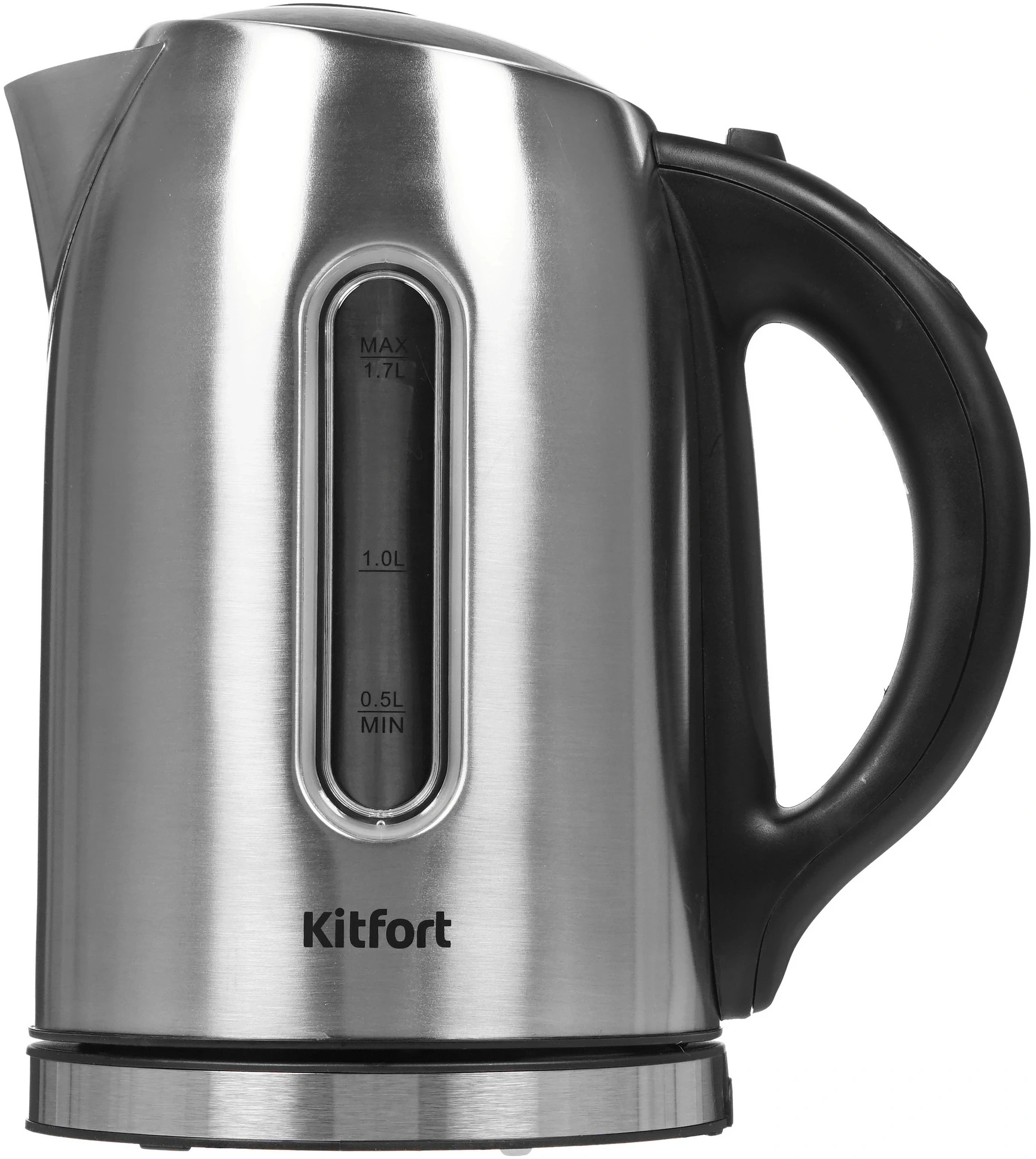 Чайник Kitfort КТ-6106 выполнен в стильном металлическом корпусе. Ручка чайника пластиковая, не нагревается и удобно лежит в руке. Для вашего удобства на ручке расположена панель управления чайником.