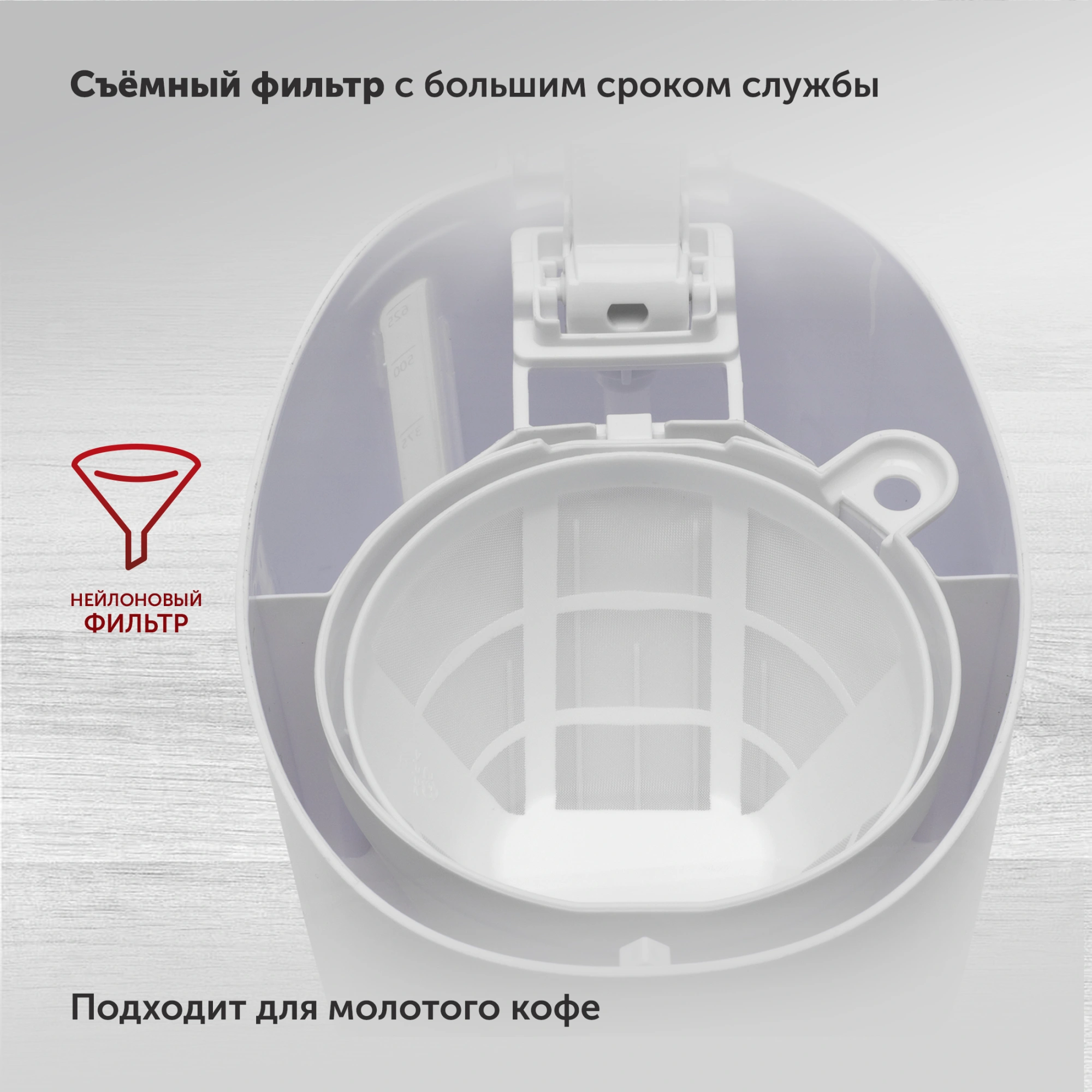 • Достаточный объем резервуара и кофейника для приготовления 10 чашек эспрессо – по 0,6 литра;