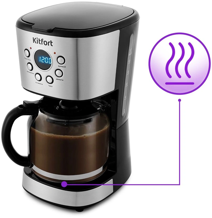 Поможет приготовить ароматный кофе из молотого кофе. Компактная и простая в использовании, идеально подойдёт для приготовления кофе в домашних условиях или в офисе. Режим автозапуска позволит вам настроить автоматическое приготовление кофе к нужному часу без вашего участия. Есть режим подогрева.
