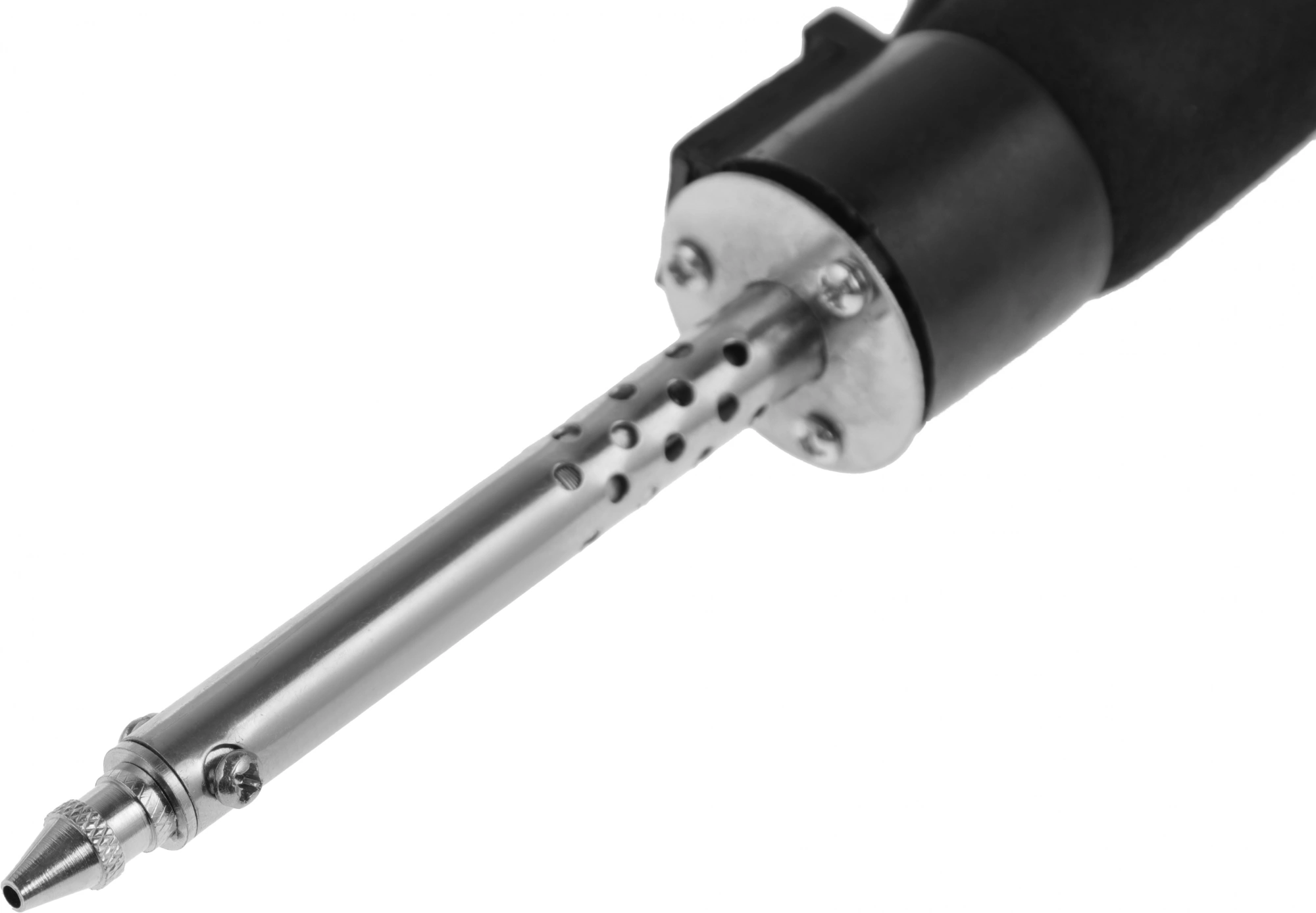 Паяльник оснащен долговечным сменным жалом. Оно обладает хорошей теплопроводностью, быстро нагревается, легко обслуживается, выдерживает активные нагрузки. Корпус прибора из ударопрочного пластика удобно лежит в руке. Высококачественные элементы и сборка гарантируют большой срок службы паяльника.