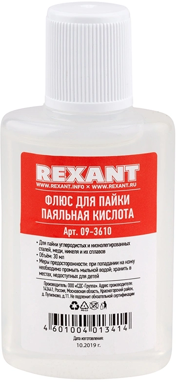 Припой с канифолью ПОС-61 10 г, диаметр 1 мм; флюс паяльная кислота 30 мл; флюс СКФ 30 мл; канифоль марки А 20 г; оплётка (медная лента) диаметр 1 мм, длина 1.5 м.