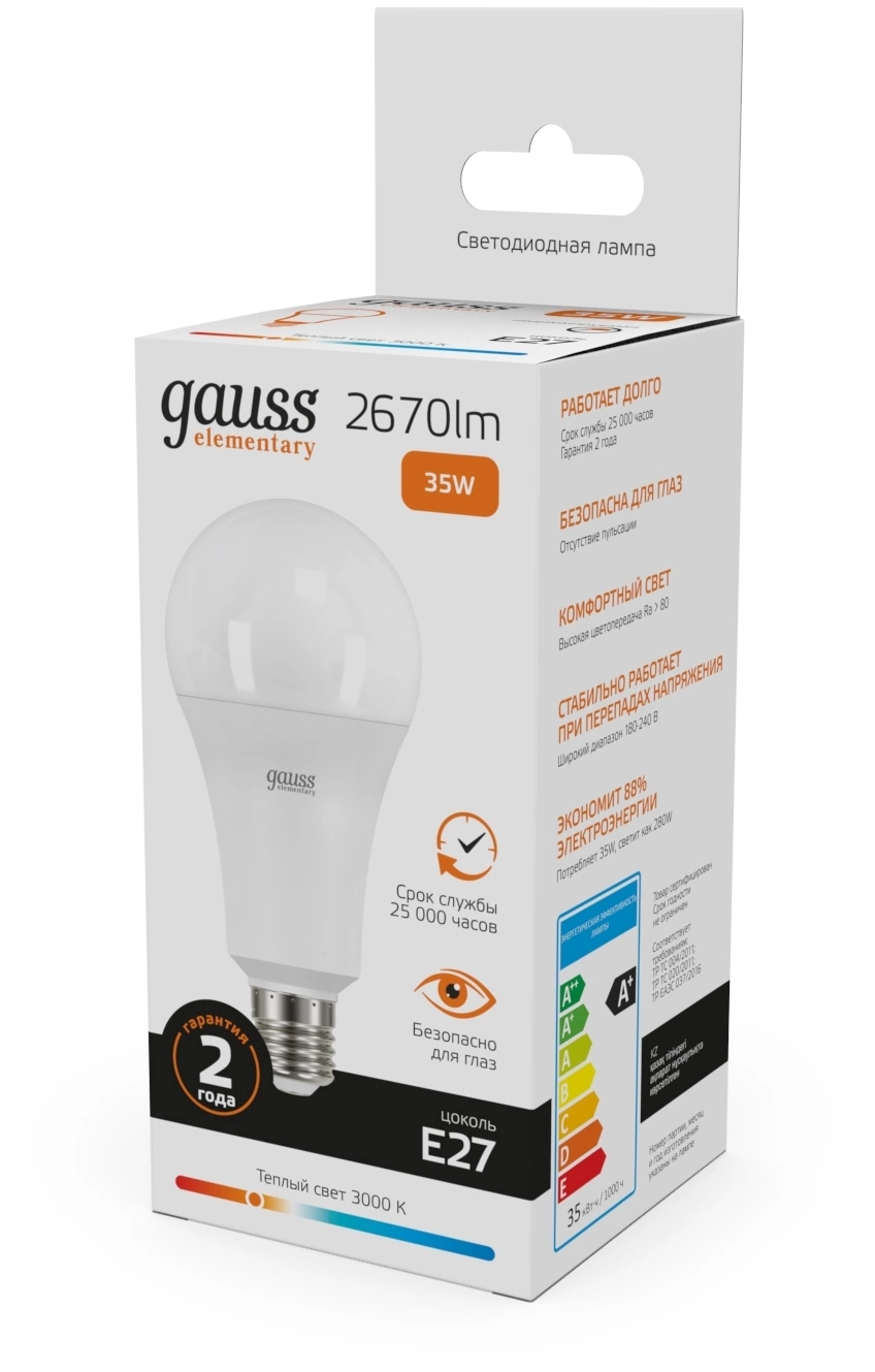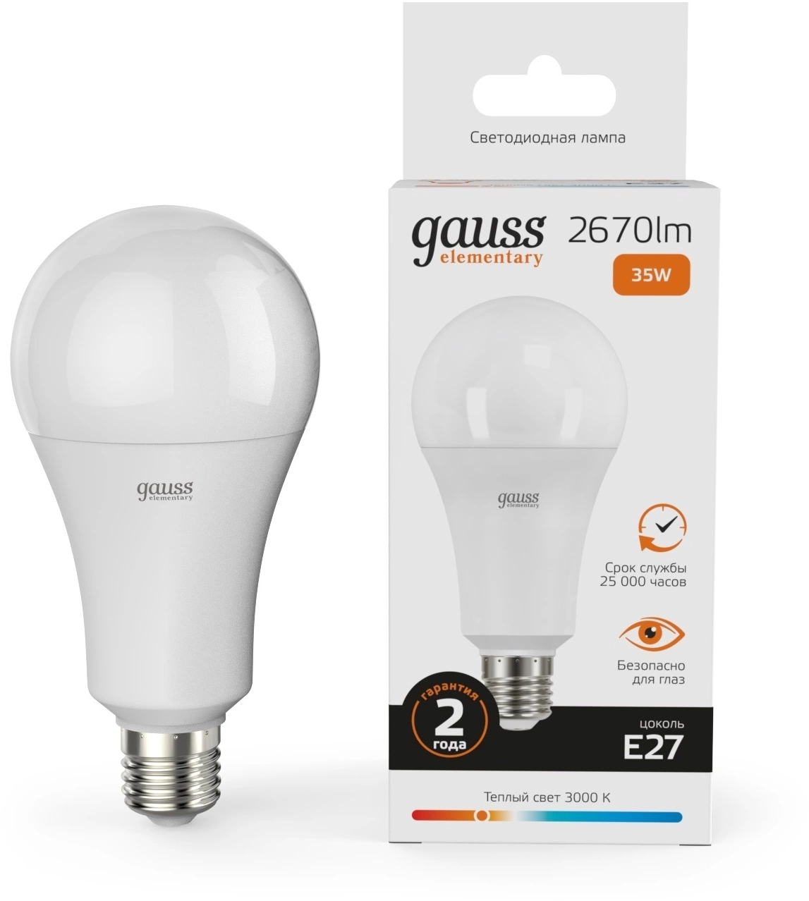 Светодиодная лампа Gauss - самый безопасный для здоровья и окружающей среды источник света. Она не пульсирует, мгновенно включается, не содержит ртути, и имеет больший срок службы, чем лампы накаливания и КЛЛ.