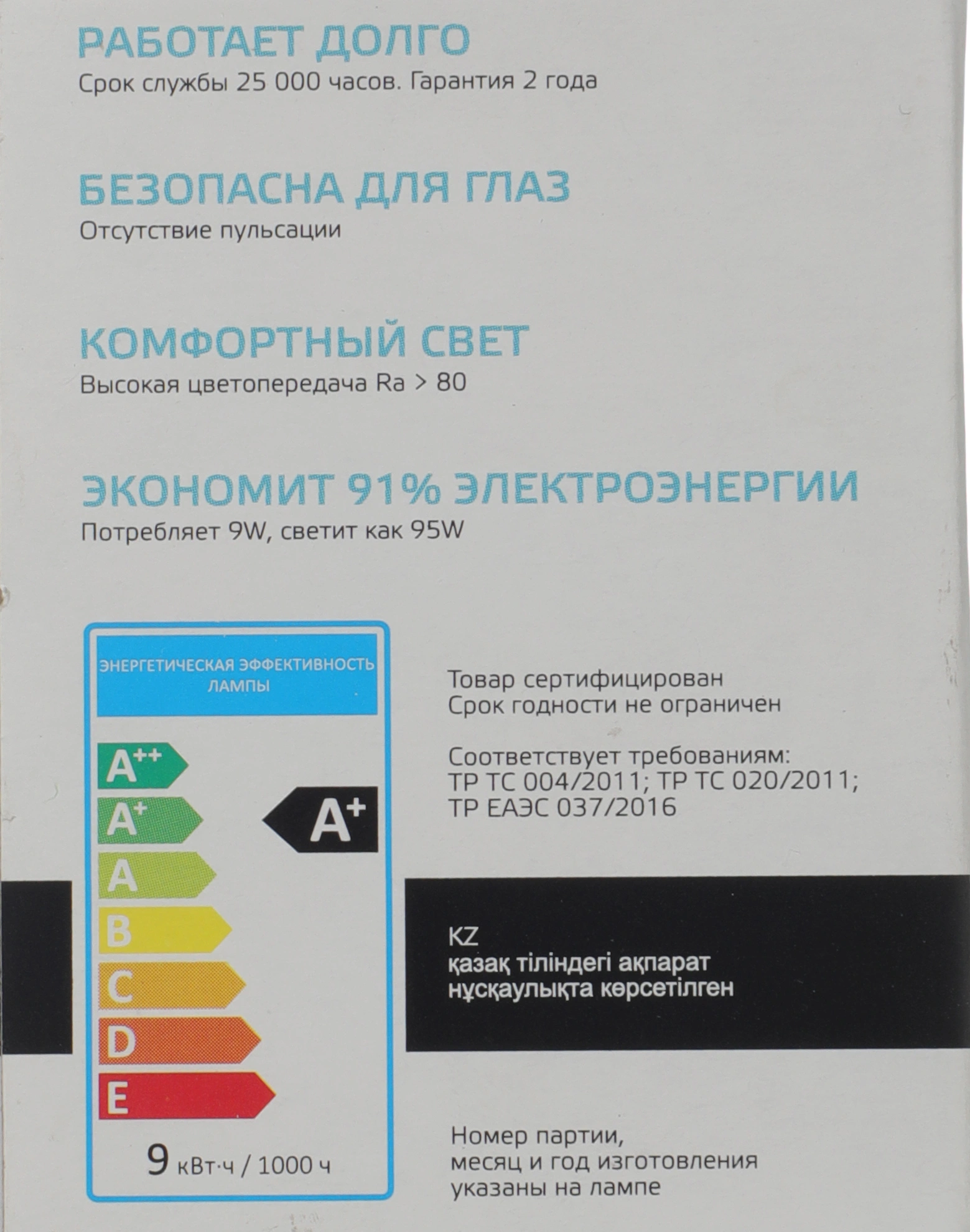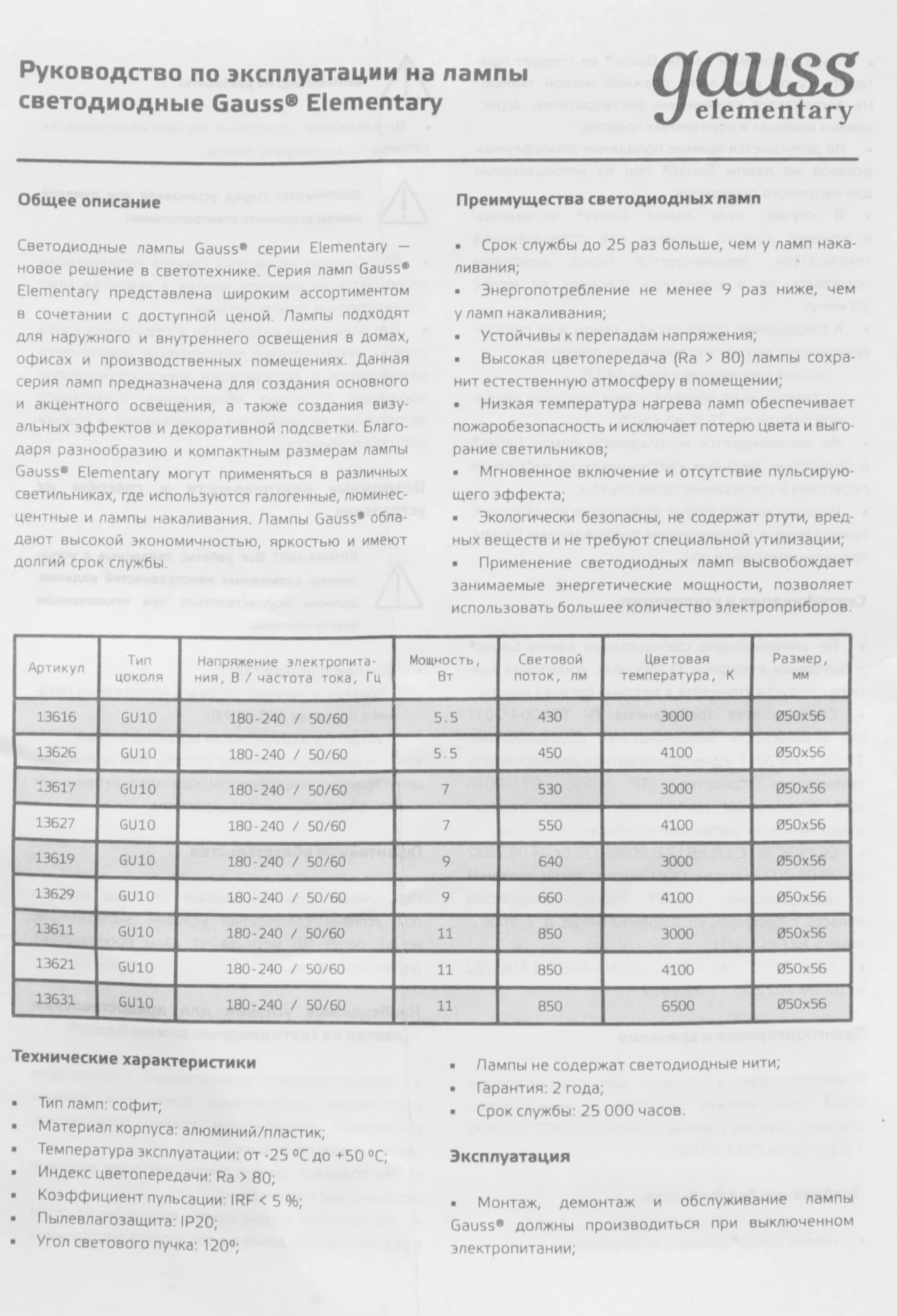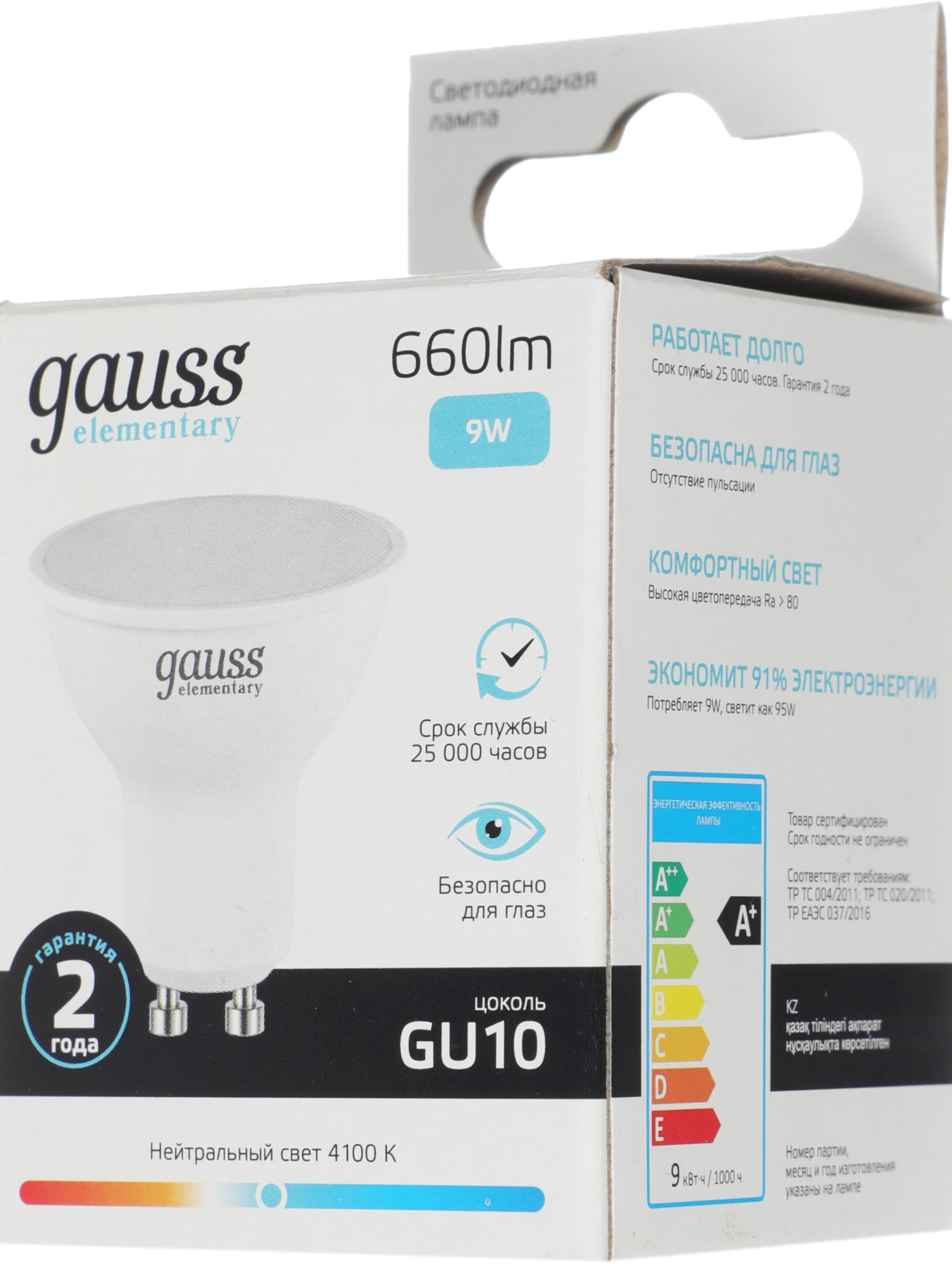 Светодиодная лампа Gauss - самый безопасный для здоровья и окружающей среды источник света. Она не пульсирует, мгновенно включается, не содержит ртути, и имеет больший срок службы, чем лампы накаливания и КЛЛ.