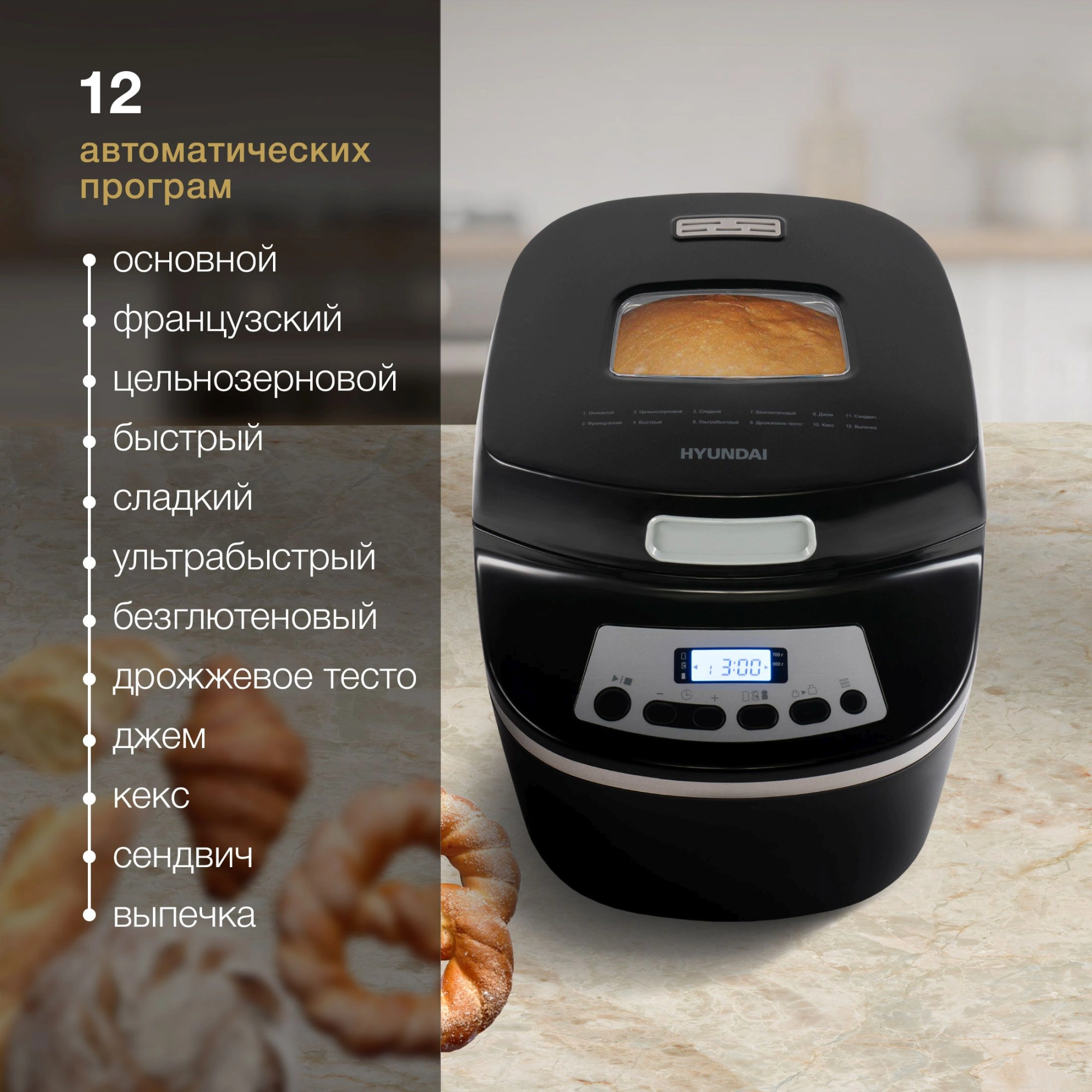Хлебопечка Hyundai HYBM-P0613 отличается универсальностью, эргономичностью, простотой управления. Она изготовлена из материала, который не подвержен негативному воздействию воды и высокой температуры. Сверху расположена герметичная крышка с клапанами для пара. Кухонное оборудование подойдет для приготовления пирожков, булочек, вареников и многого другого. Бытовая техника обладает большим набором функций, есть возможность установки таймера. Все данные о процессе приготовления еды отображаются на дисплее. Надписи на кнопках выполнены на русском языке, поэтому нет необходимости читать инструкцию в поисках подходящей программы. Кухонное оборудование станет настоящим высокоэффективным помощником для хозяйки и при этом украсит интерьер.