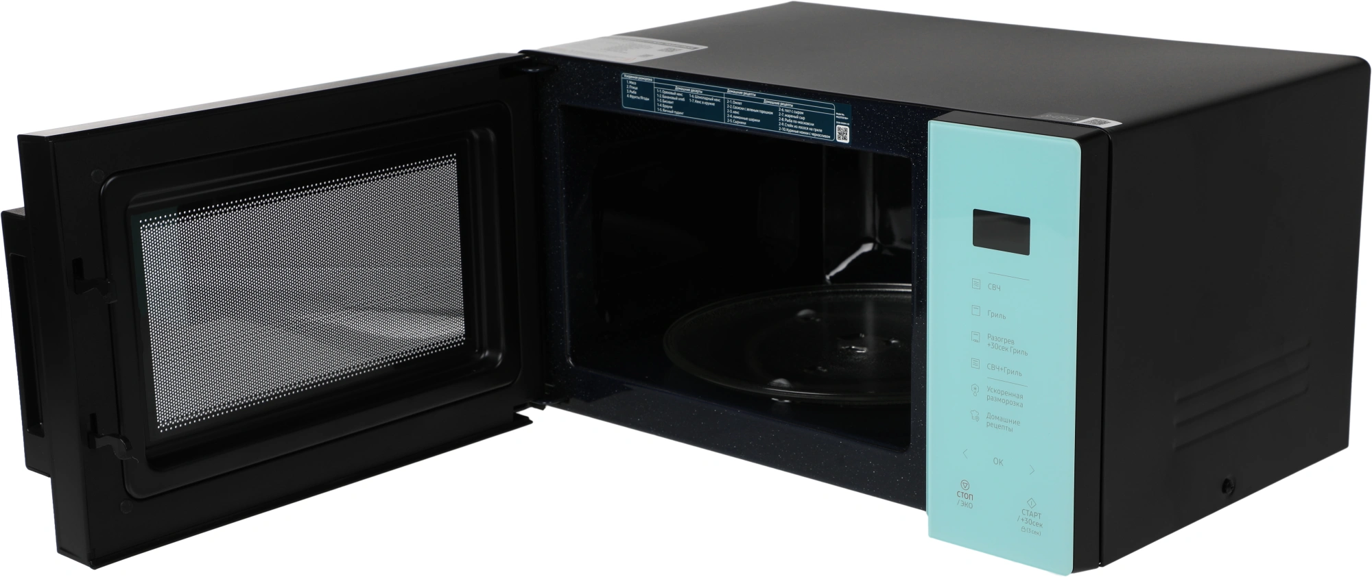 быстрый старт, звуковой сигнал окончания приготовления, кнопка +30 секунд, отключение сигнала, пауза, регулировка мощности
