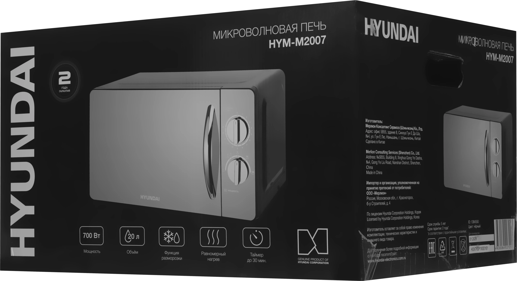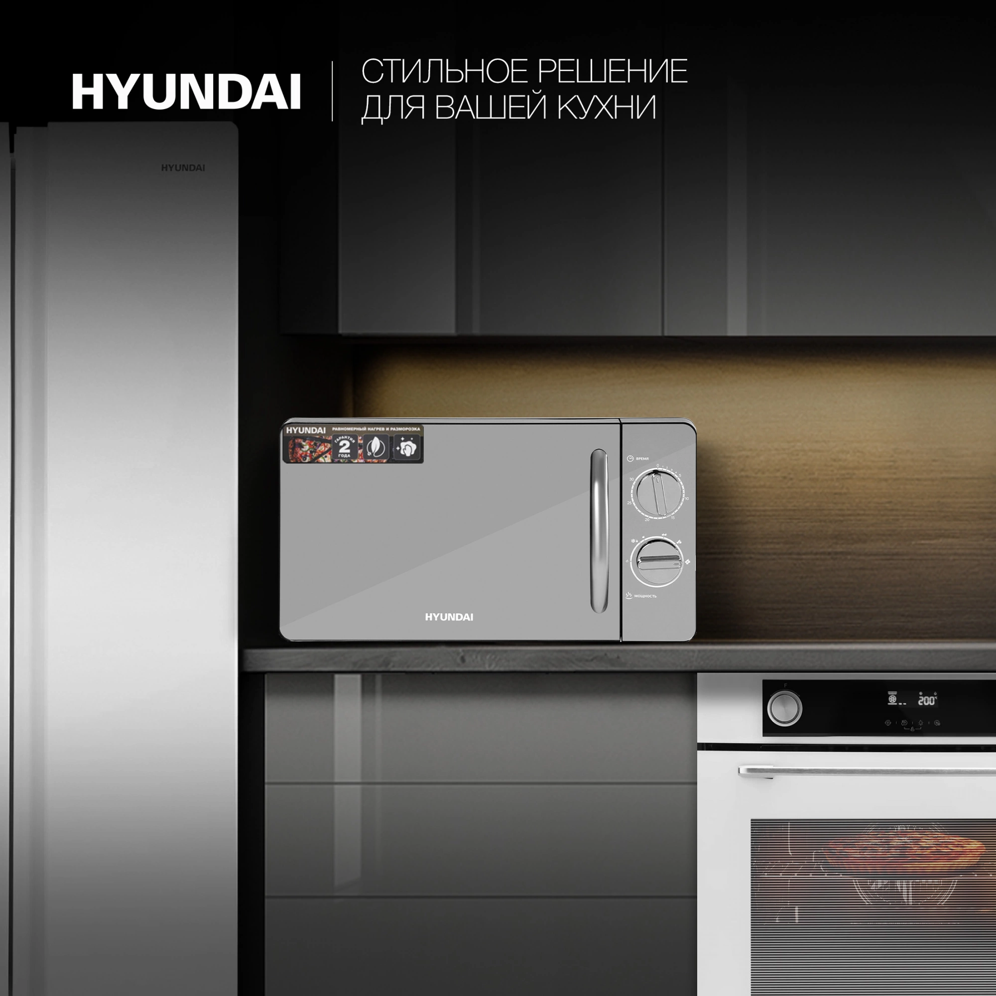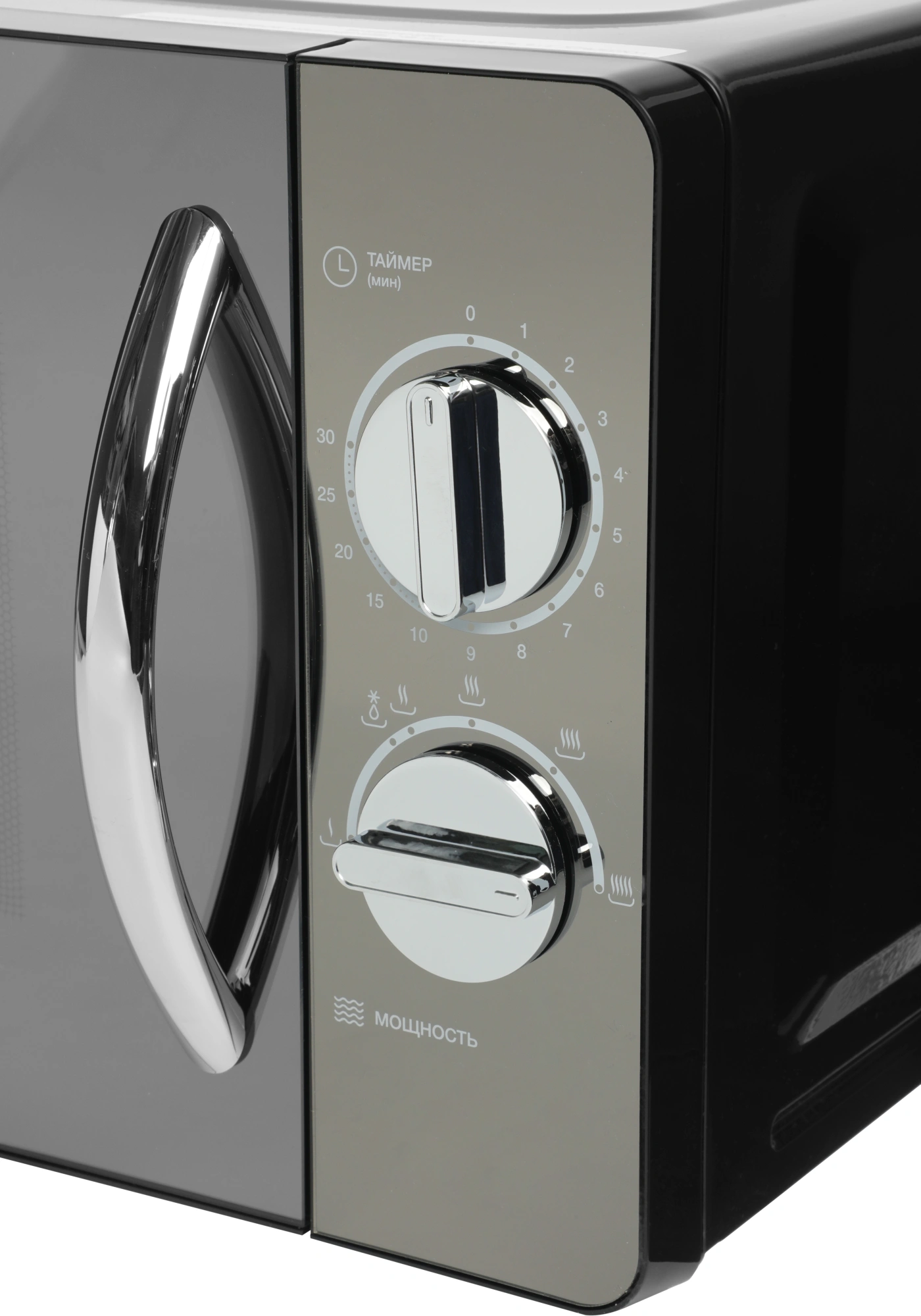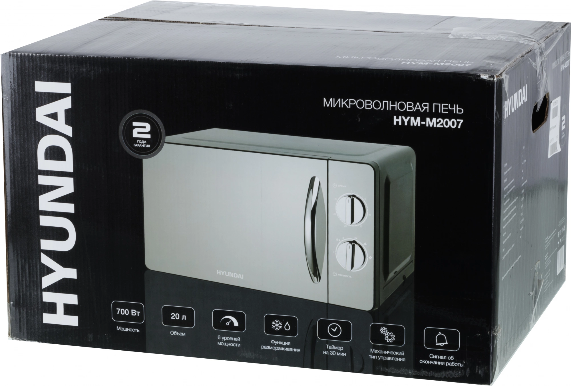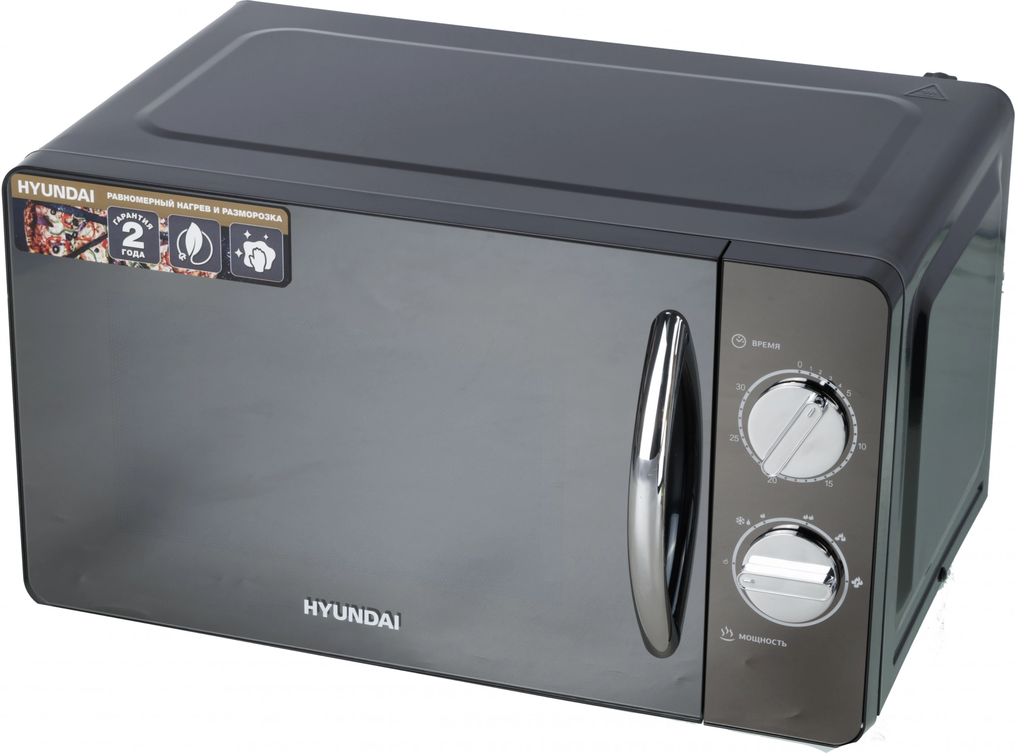 СВЧ Hyundai HYM-M2007 отличается стильным внешним видом. Фронтальная поверхность полностью зеркальная. Несмотря на это, за ней очень легко ухаживать. Лаконично впишется в любой интерьер и станет акцентом в современных стилистических решениях. Металлический корпус окрашен в черный цвет. Дверка открывается мягко, с помощью ручки серебристого оттенка. Внутренняя поверхность покрыта специальной эмалью, за которой просто ухаживать. При помощи поворотных переключателей легко управлять режимами. Выбираются время и мощность. После завершения процесса звучит приятный звуковой сигнал. Устройство подходит для подогрева уже готовой пищи и размораживания продуктов. Эти основные функции наиболее востребованы при эксплуатации микроволновых печей. Потребителю не приходится переплачивать за лишний функционал.