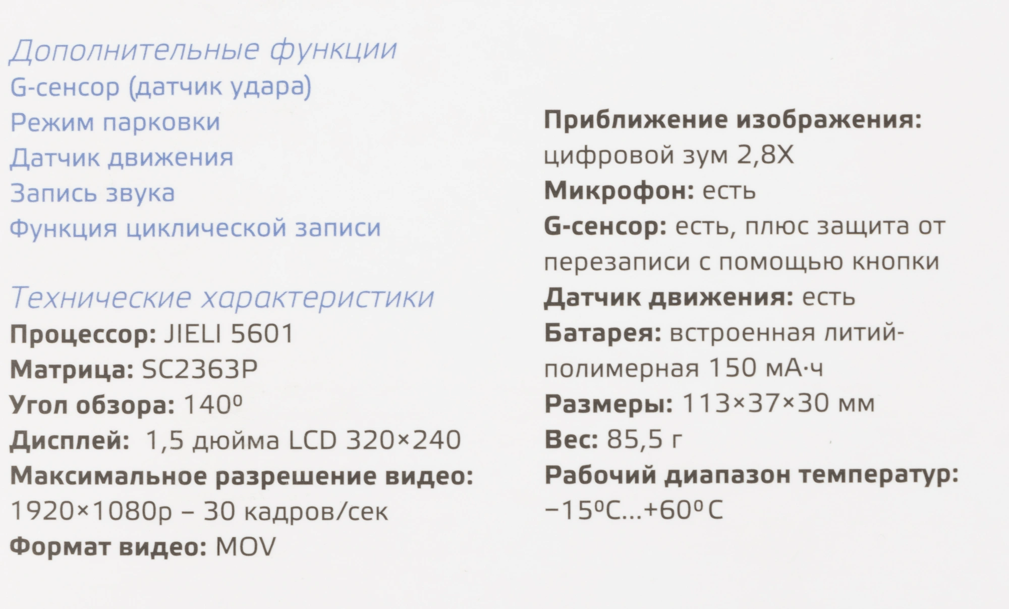 автоматическое включение, включение по сигналу датчика, возможность сделать фотоснимок, датчик движения, дисплей, ИК-подсветка, микрофон, ручное включение