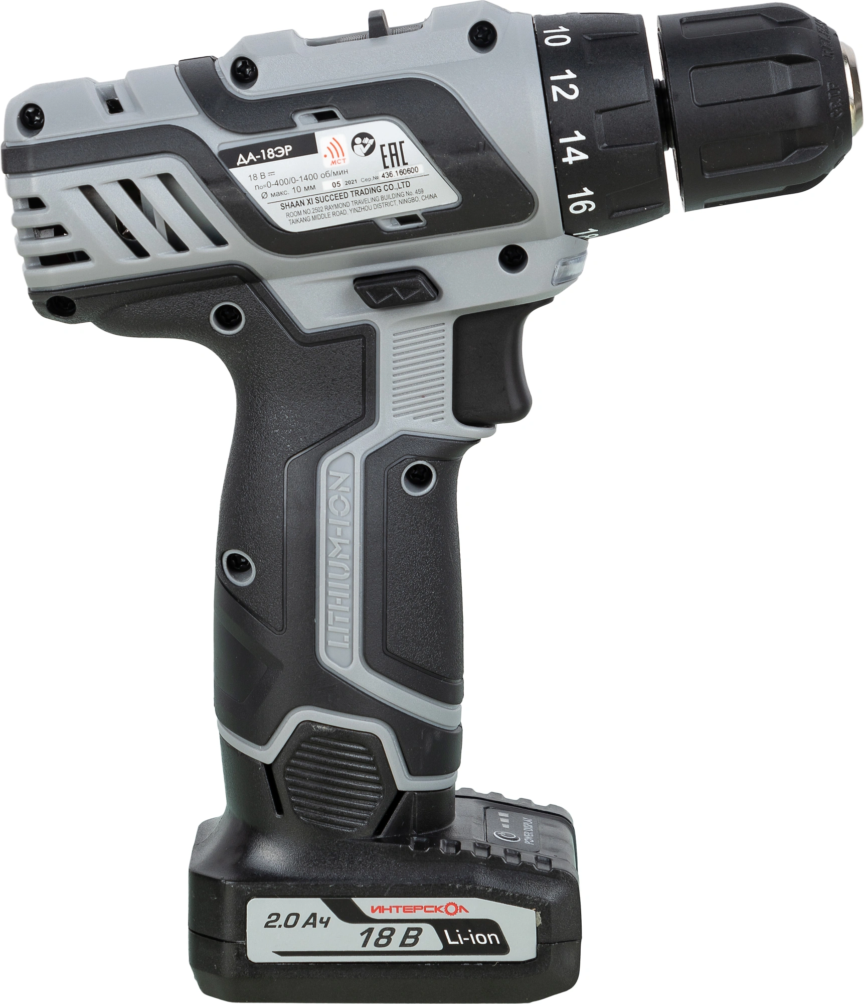 Дрель-шуруповерт, 2 аккумулятора, зарядное устройство, инструкция, упаковка "экокейс".