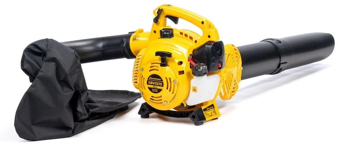 Воздуходувка-измельчитель Champion GBV327S используется для всасывания и измельчения мелкого сухого мусора и листьев. Производительность. Модель имеет бензиновый мотор, который обеспечивает подачу большого объема воздуха. Вместительность. Мусоросборник вмещает до 50 литров отходов.