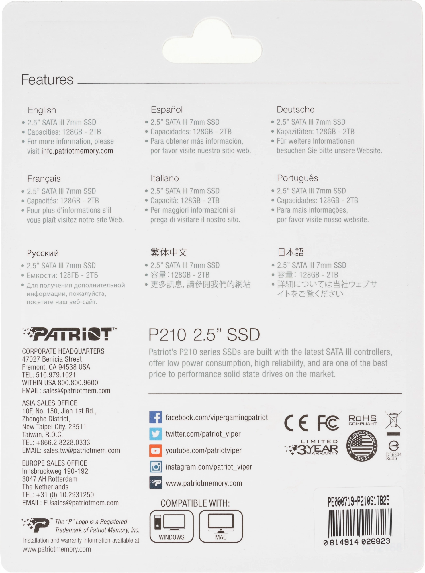 Накопитель SSD Patriot SATA-III 1TB P210S1TB25