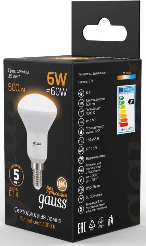 6Вт цок.:E14 рефлек. 220B св.свеч.бел.теп. (упак....