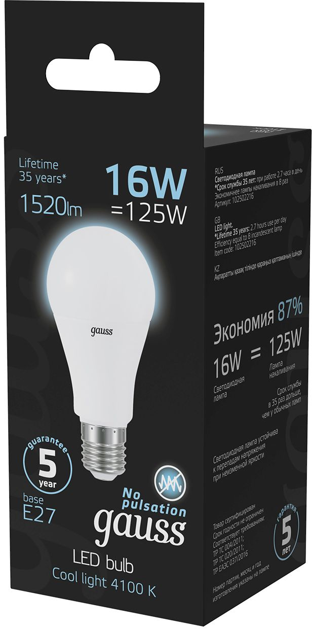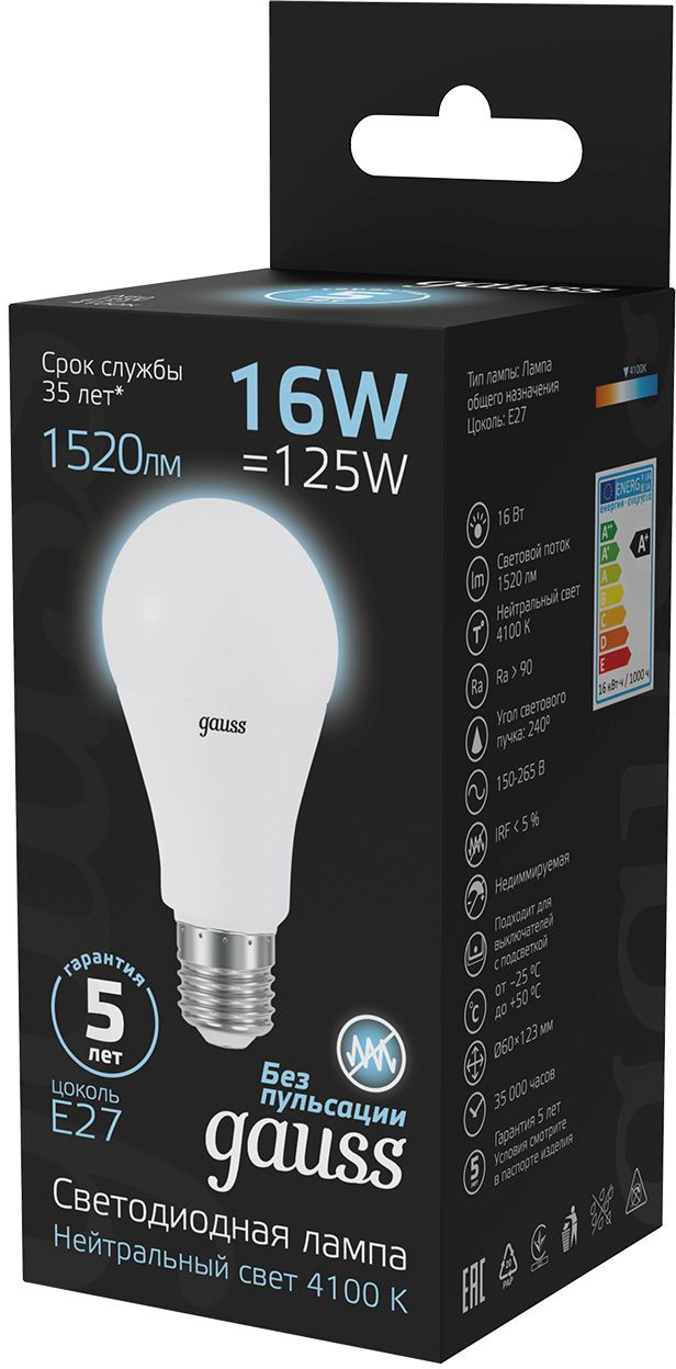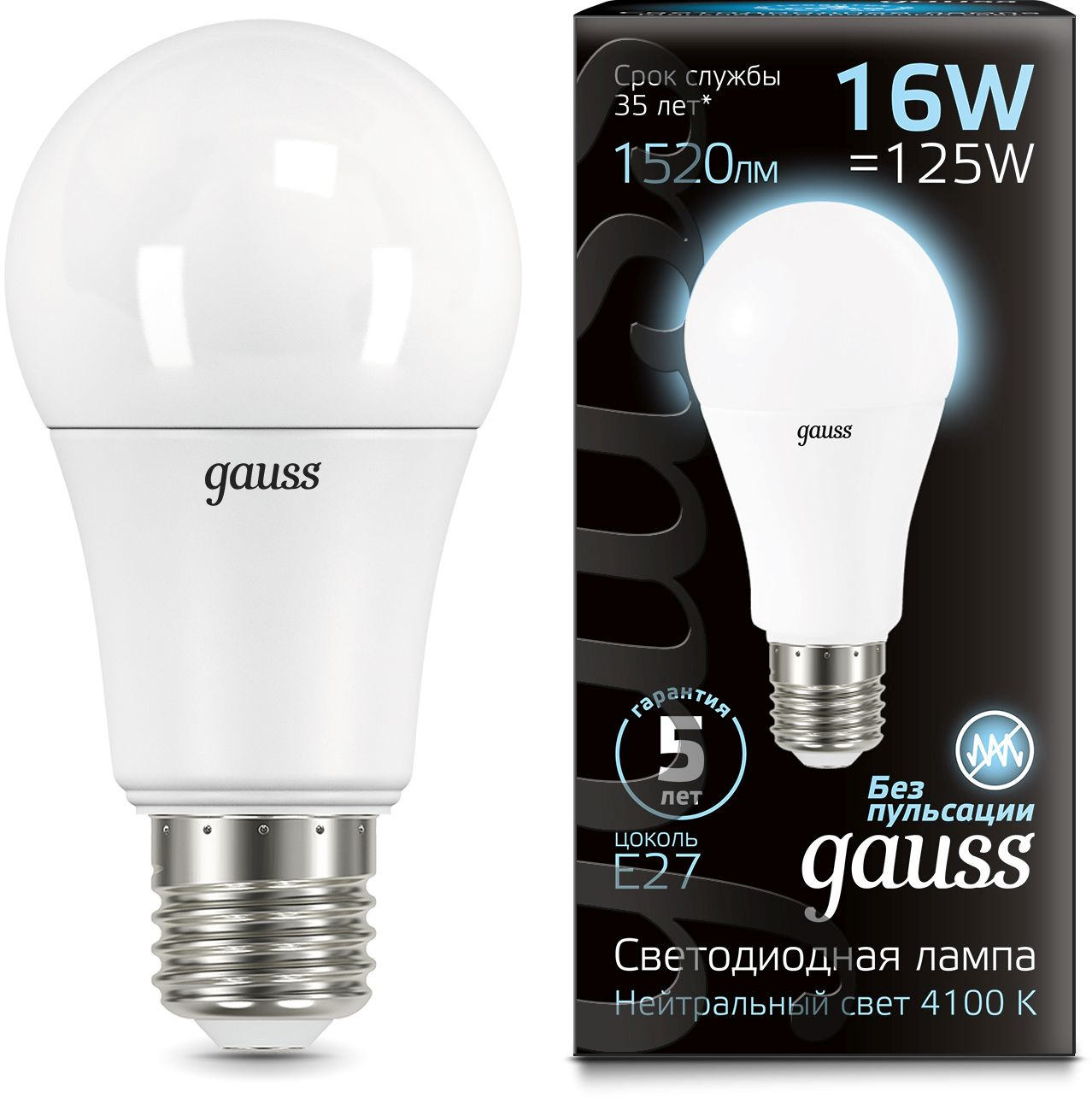 16Вт цок.:E27 груша 220B св.свеч.бел.нейт. (упак....