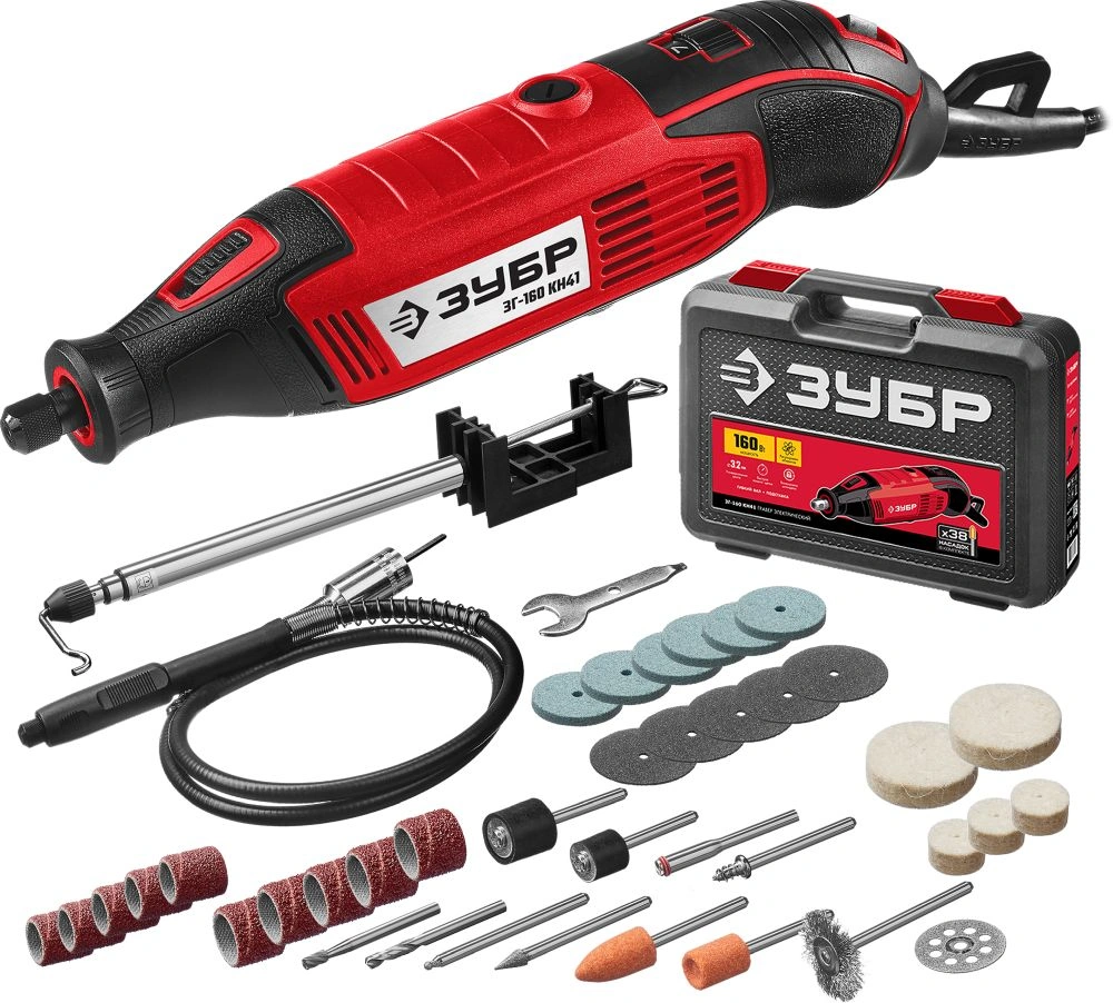 Гравер ЗУБР - универсальное устройство для широкого спектра работ (резка, сверление, полирование, гравирование, шлифование). Расширенная комплектация включает в себя базовый набор насадок для начала работы сразу после покупки.ЗУБР - реализуя Ваши мечты