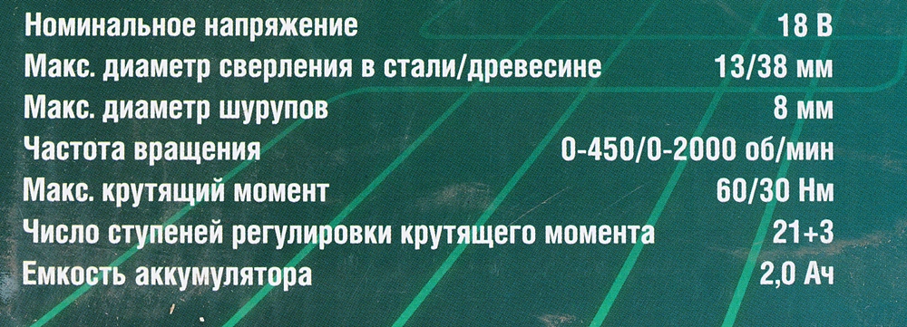 Редуктор с механическим переключением скоростей; управление скоростью вращения нажатием на курок; металлический патрон с фиксацией; удобная обрезиненная рукоятка; скоба для подвешивания на ремень; мощная подсветка рабочей зоны, автоматически подключающаяся при недостаточном уровне освещенности.