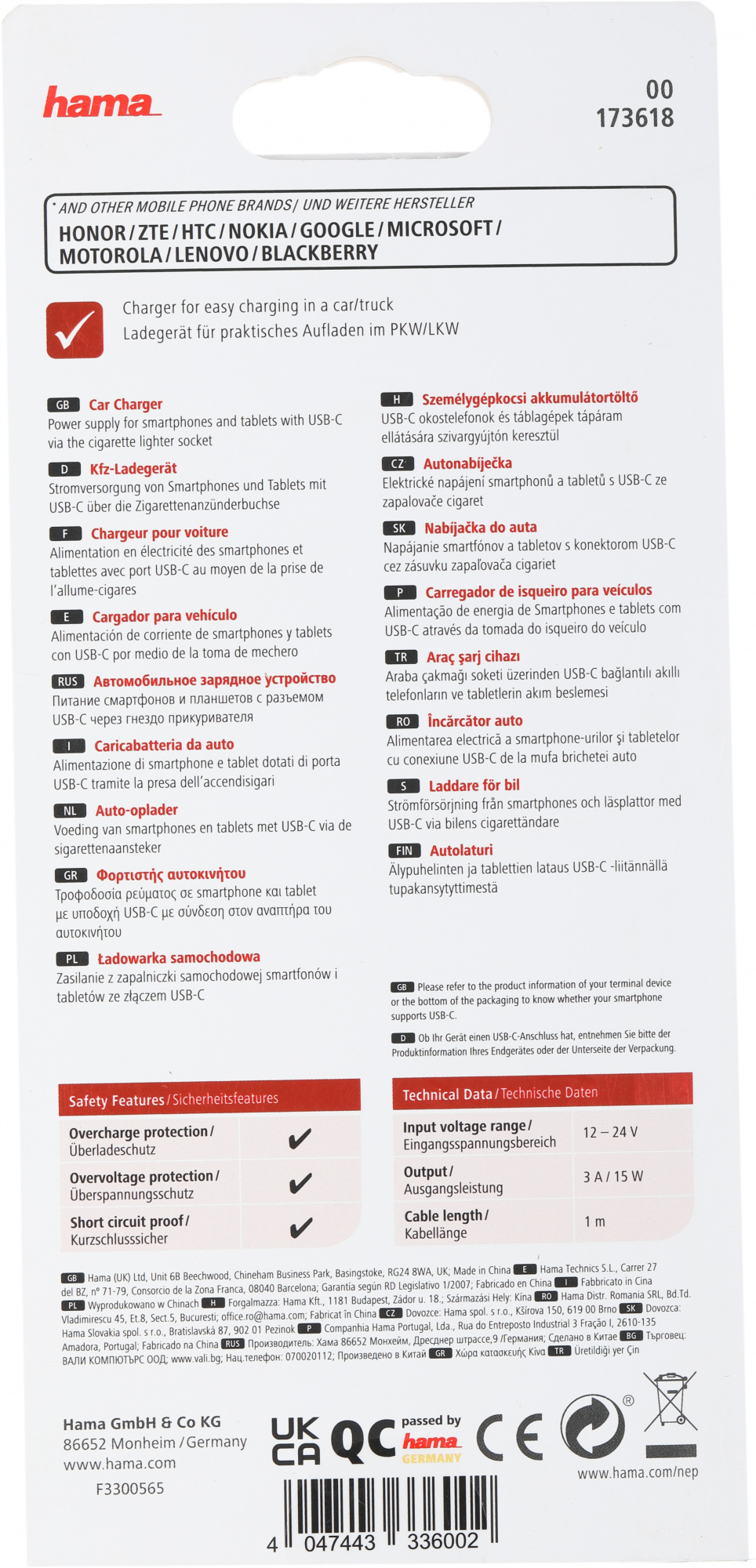 15W 3A (PD) универсальное черный (00173618)