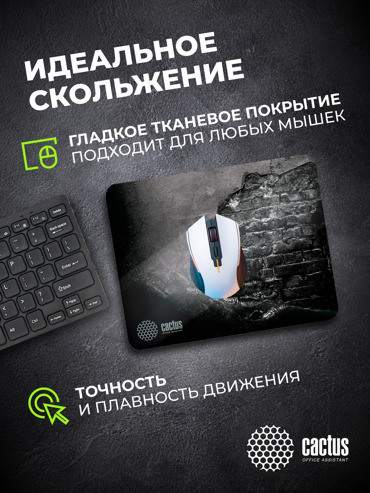 Коврик для мыши Cactus идеально подойдёт фанатам логических головоломок, квестов и стратегий. Он также будет полезен и пользователям офисных программ и графических редакторов, помогая более полно взаимодействовать с компьютерной мышью и точно позиционировать курсор.
