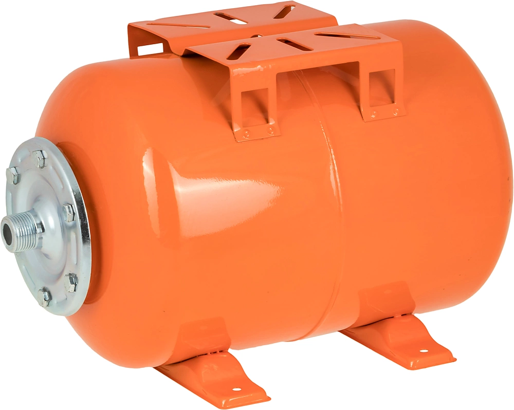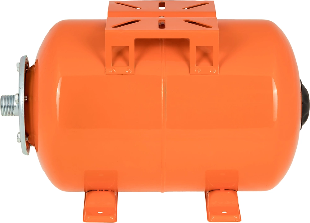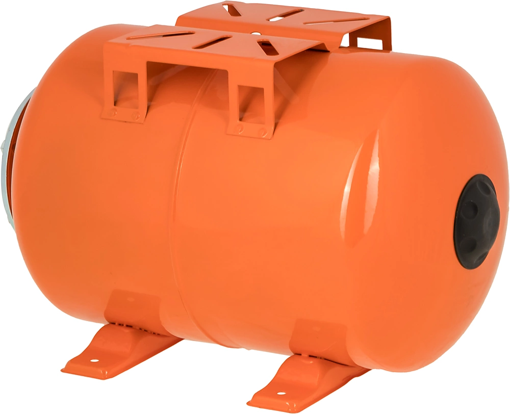 Гидроаккумулятор (бак) ВИХРЬ ГА-24 служит для аккумулирования воды под давлением и сглаживания гидроударов. Используется в системе водоснабжения совместно со скважинным или поверхностным насосом. Он состоит из стального резервуара со сменной мембраной из пищевой резины и имеет пневмоклапан.