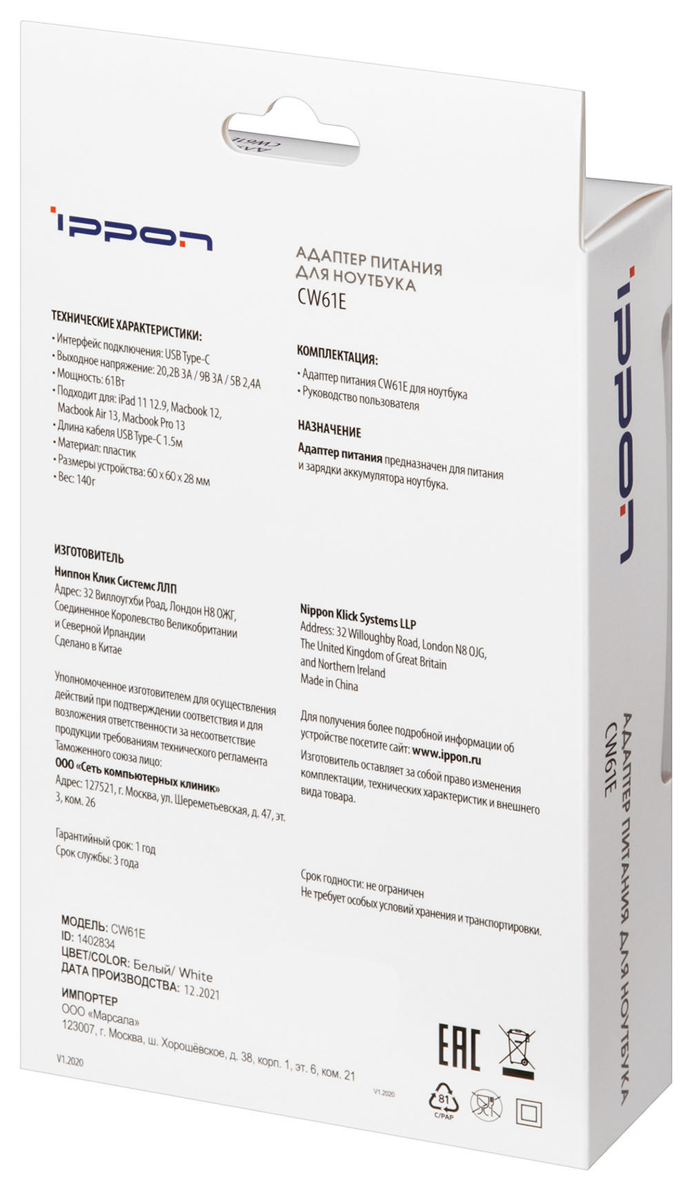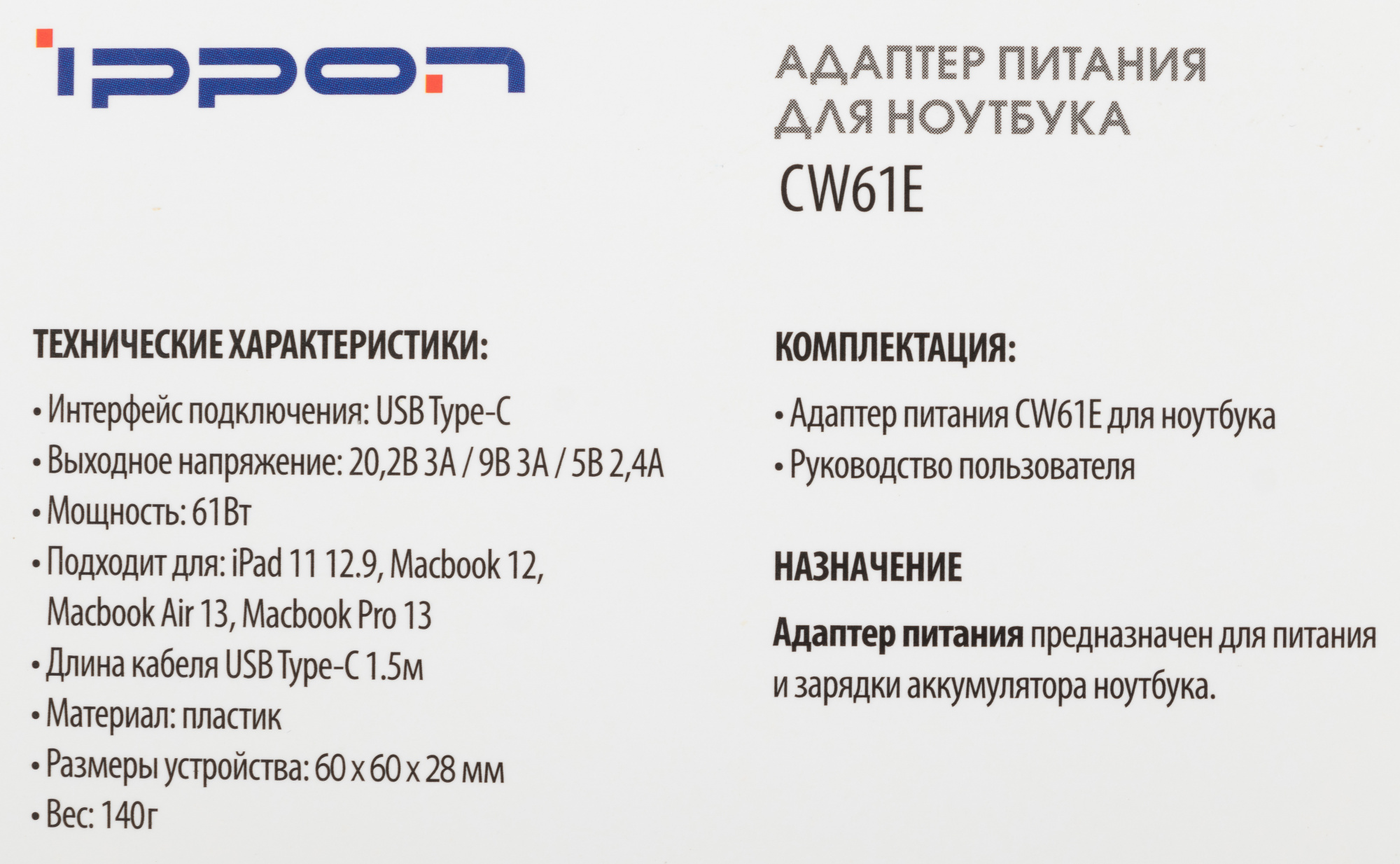 Адаптер питания для iPad 11 12.9", Macbook 12", Macbook Air 13", Macbook Pro 13" с разъемом USB Type-C