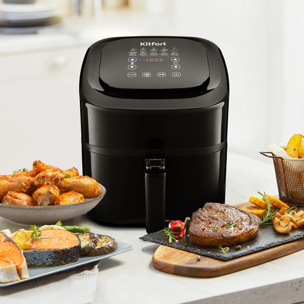 Аэрогриль, аэрофритюрница и духовка. Позволяет готовить большинство продуктов с минимальным количеством масла или вовсе без его добавления. Благодаря циркуляции горячего воздуха, продукты обжариваются со всех сторон, получаясь при этом нежными внутри и с хрустящей корочкой снаружи.