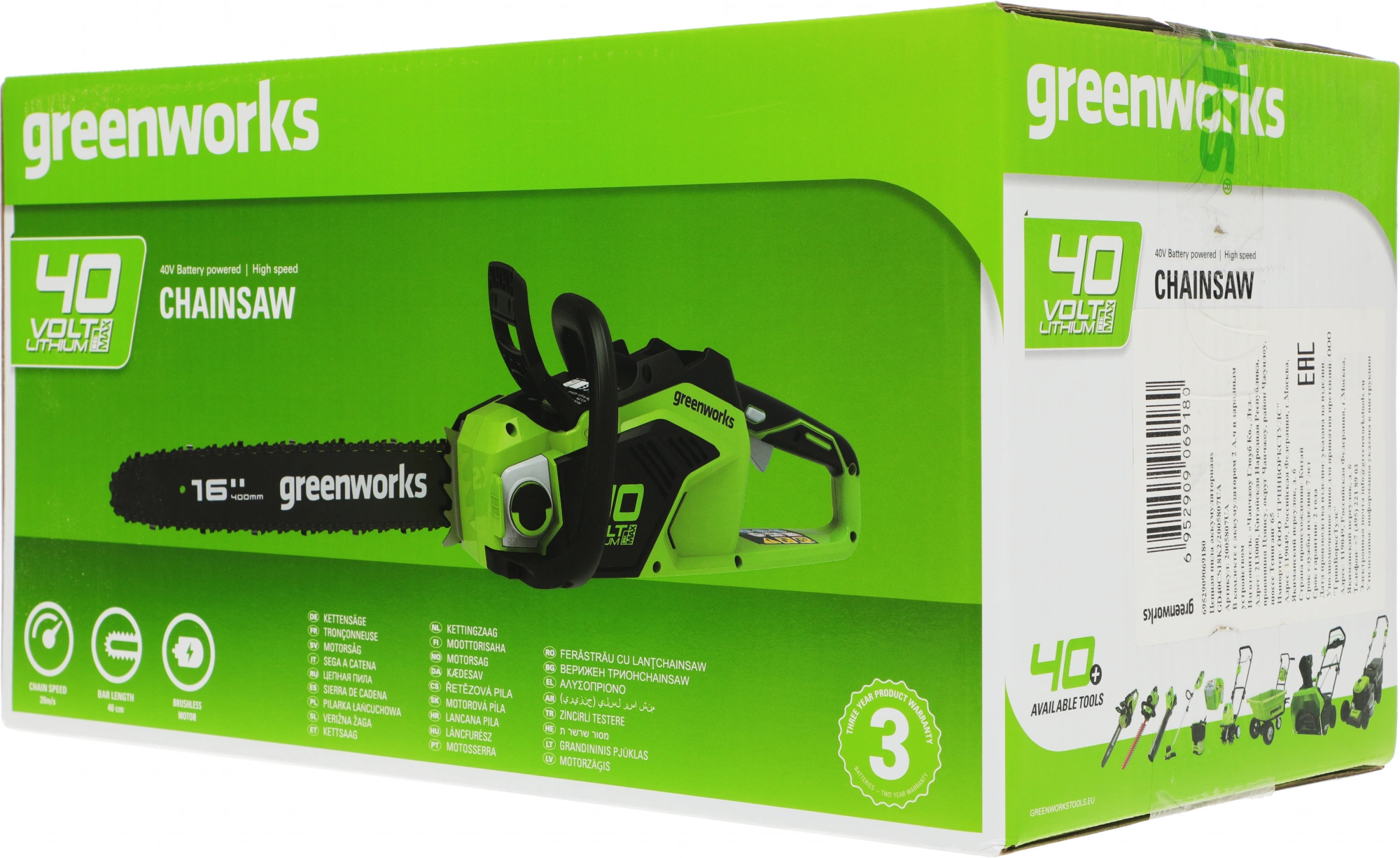 Пила цепная аккумуляторная GREENWORKS GD40CS18 - полупрофессиональная цепная пила, которая отлично подойдет для полноценного ведения дачного хозяйства. Ее надежный бесщеточный двигатель сопоставим по мощности с бензиновыми аналогами на 1,8 л/сил.