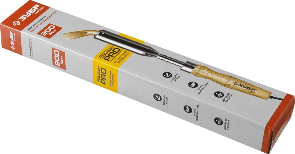Паяльник оснащен медным жалом, обеспечивающим качественную пайку. Легкая деревянная эргономичная рукоятка. Высококачественный керамический нагревательный элемент для быстрого достижения необходимой температуры жала.