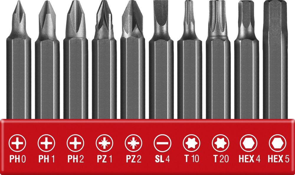 Отвертка электрическая; Зарядное устройство; Аккумуляторная батарея(встроенная); Биты 50 мм: 10 PH0, PH1, PH2, PZ1, PZ2, S4, T10, T20, HEX4, HEX5; Кейс
