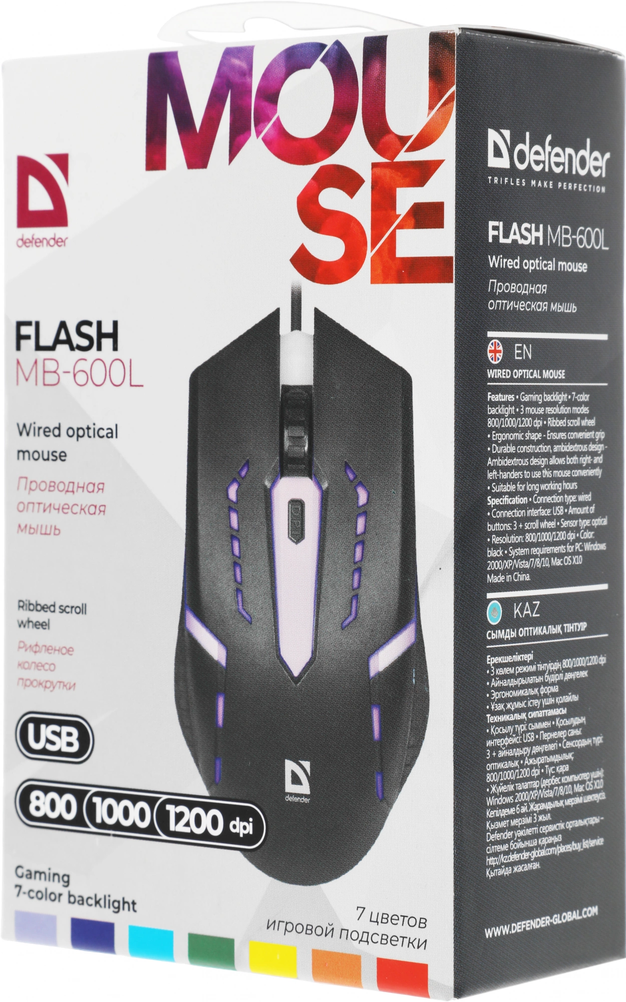 7 цветов подсветки. Рифленое колесо прокрутки. Эргономичная форма.
