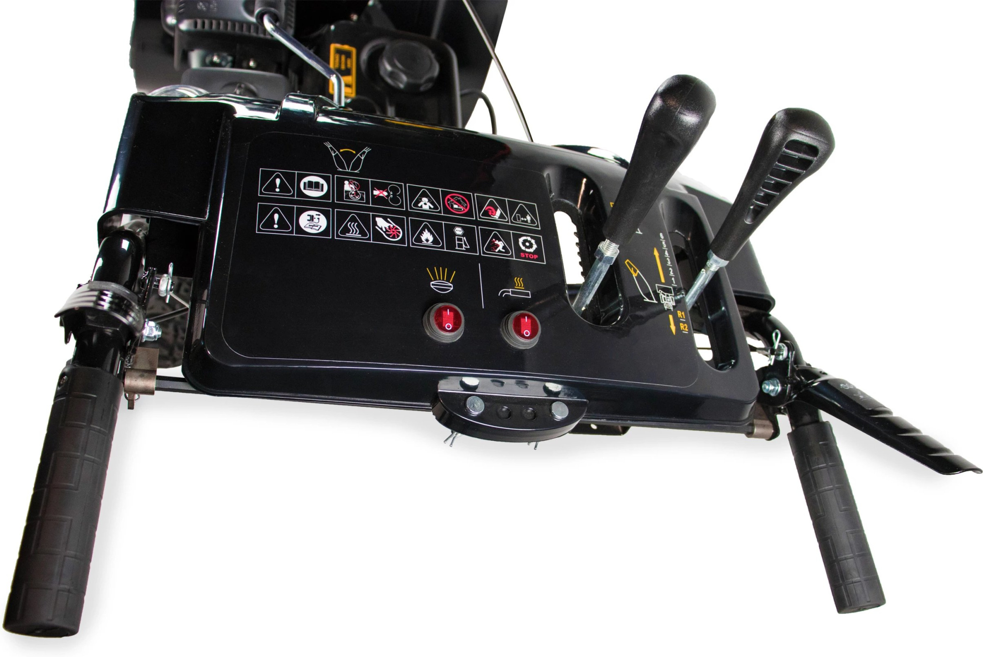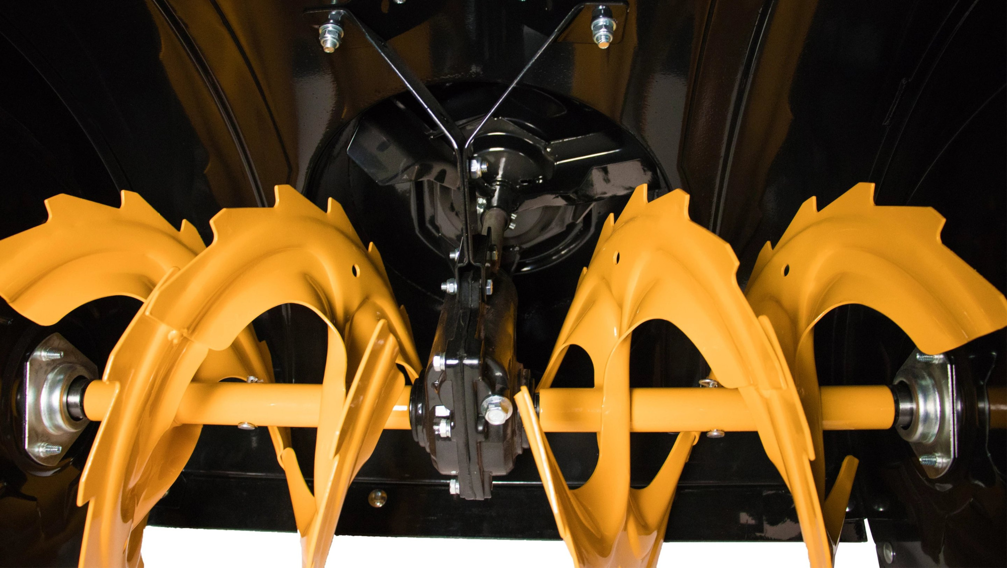 Металлические шнеки с зубцами эффективно измельчают снег любой плотности. Положение желоба выброса снега регулируется дистанционно на панели. Фары обеспечивают более комфортную работу в темное время суток. Агрессивный протектор колес - для хорошего сцепления с поверхностью даже в гололед.