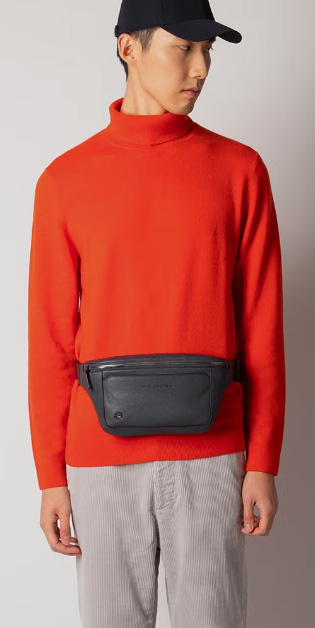 Выполнена из мелкозернистой телячьей кожи с черной окантовкой. Имеет одно отделение, внешние карманы и внутренний отсек для телефона. Сумку можно носить, как на поясе, так и через плечо. Несмотря на компактные размеры, сумка достаточно вместительна и имеет отсек для планшета Ipad mini.